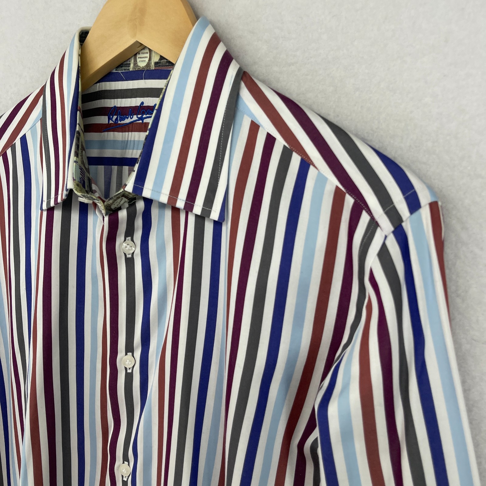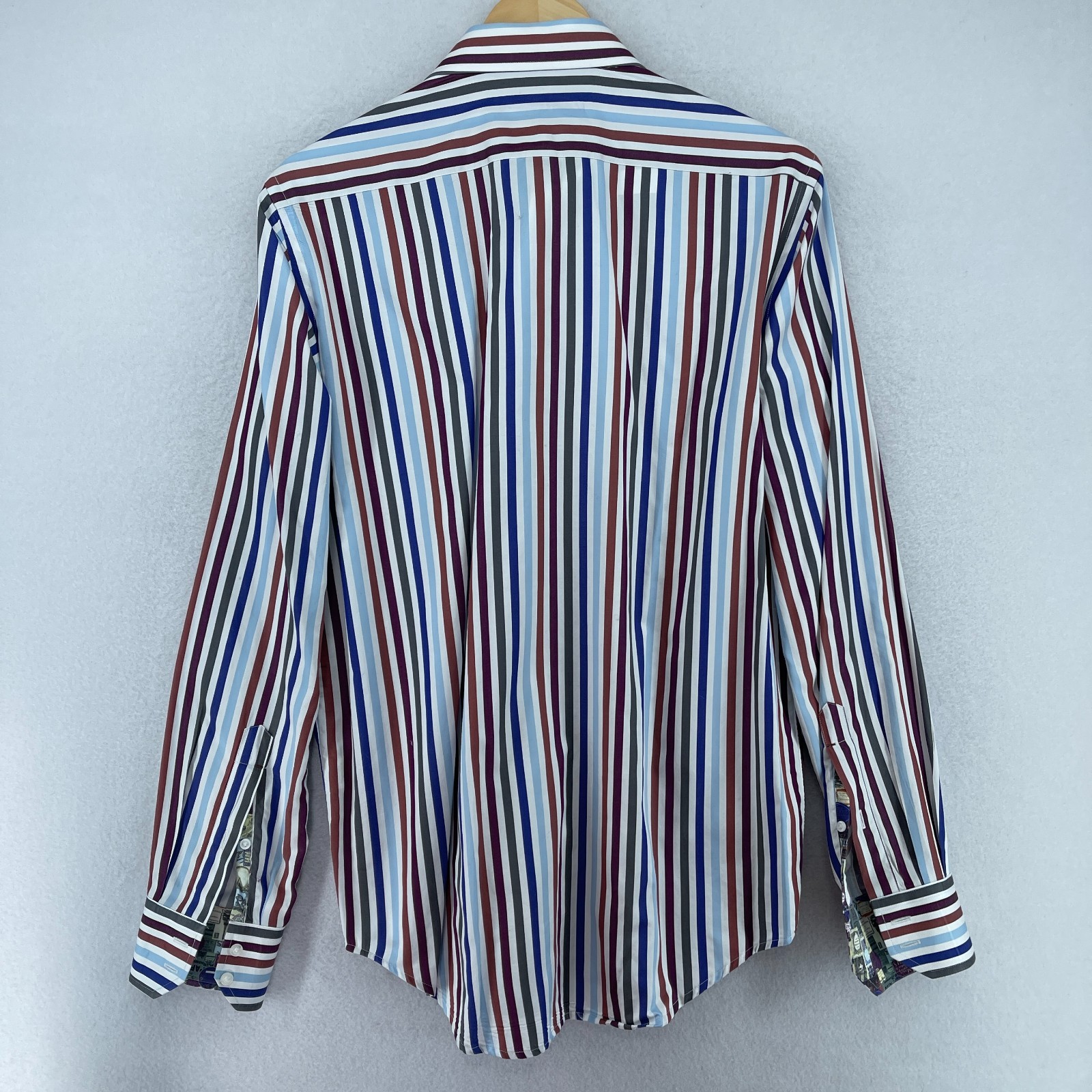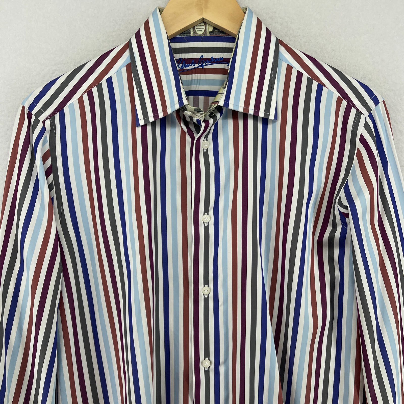 как выглядит ROBERT GRAHAM Shirt Mens M 15 1/2 39 Dress Striped Flip Cuff Button Up Blue фото