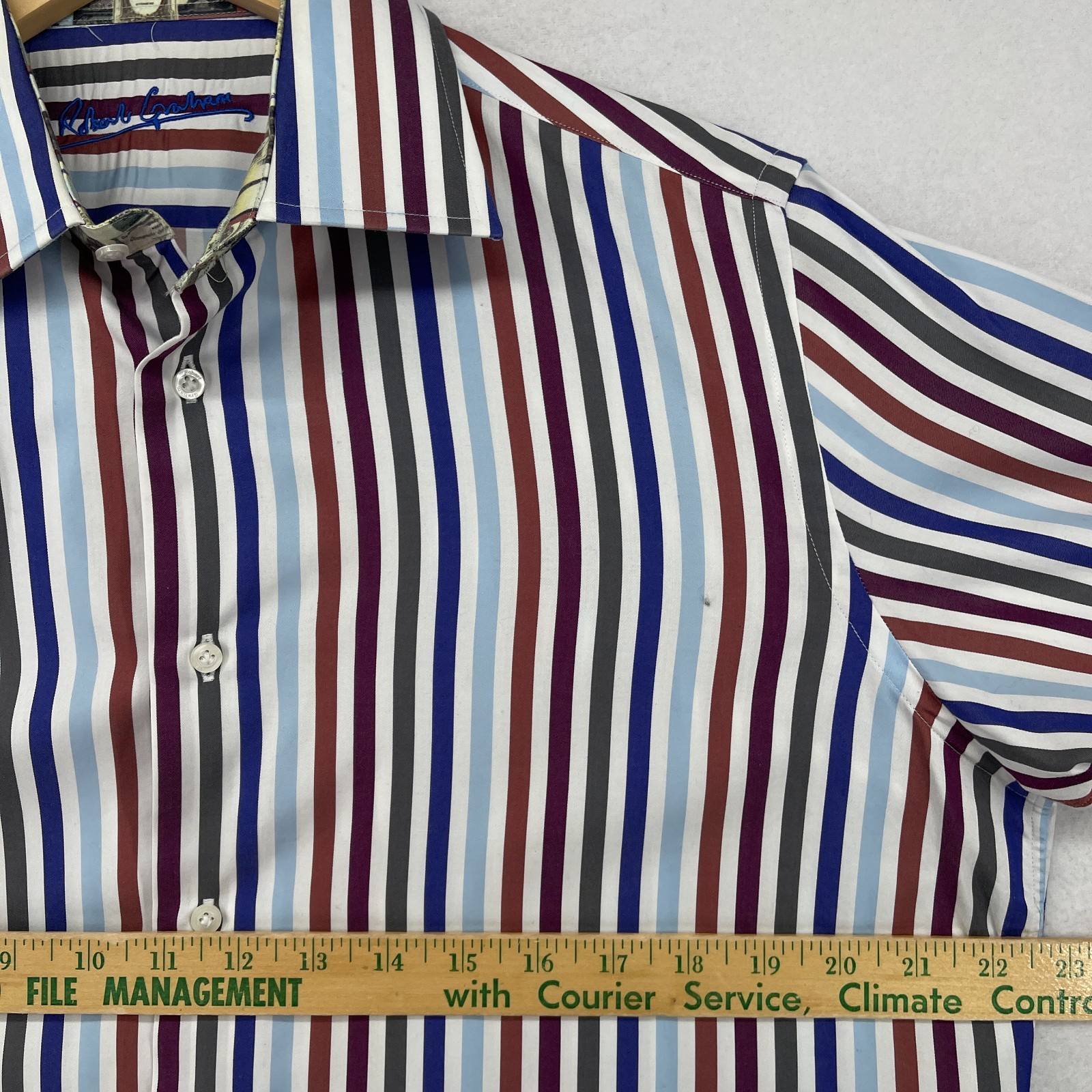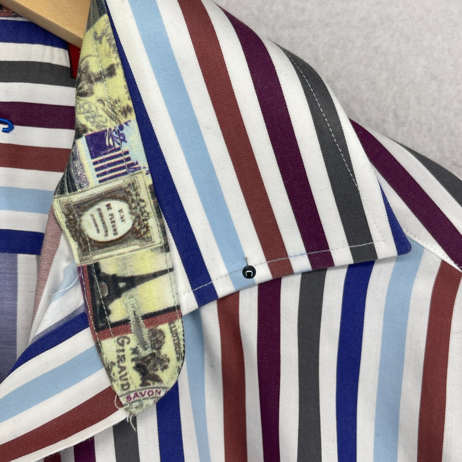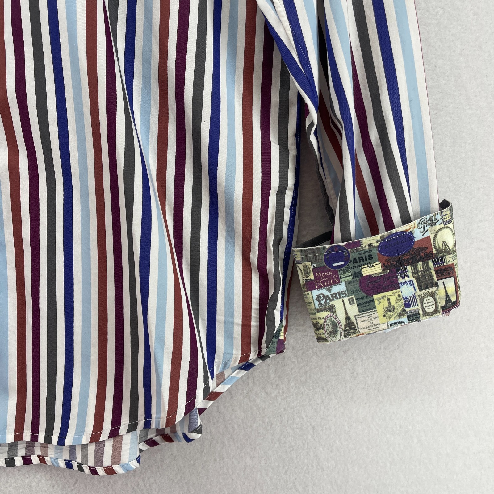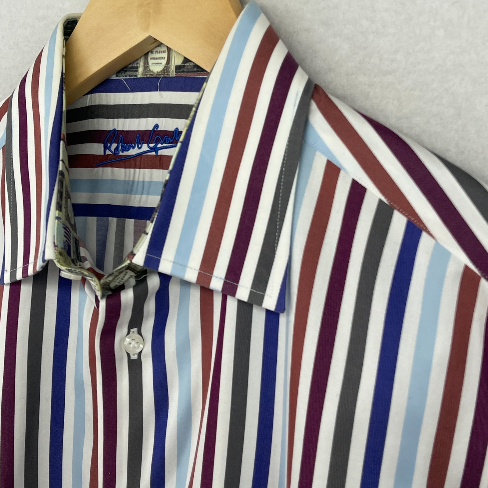 как выглядит ROBERT GRAHAM Shirt Mens M 15 1/2 39 Dress Striped Flip Cuff Button Up Blue фото
