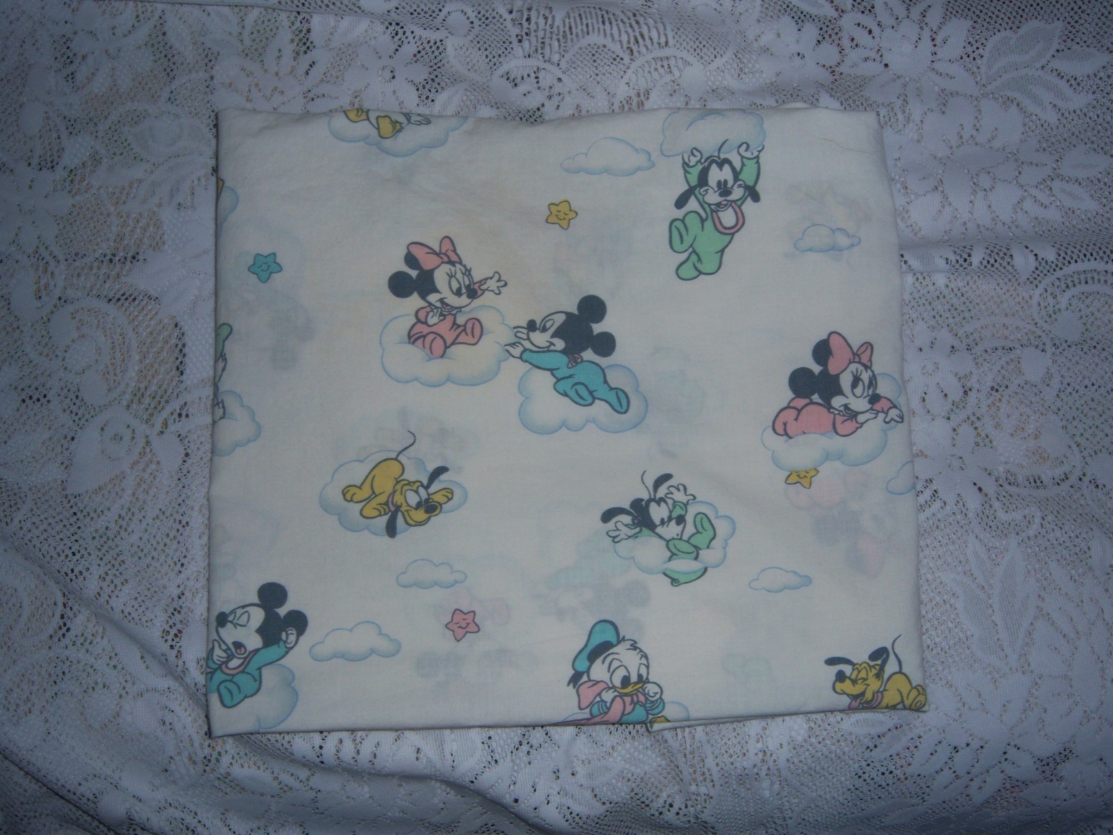как выглядит Vtg Rare Dundee Disney Babies Mickey Minnie Mouse Fitted Crib Sheet pastel фото