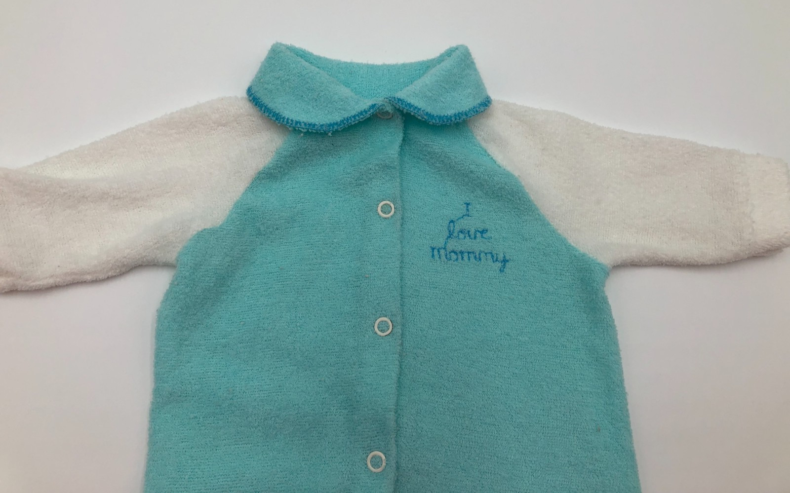 Vintage Green White Baby Girl or Boys Terrycloth Sleeper Size Small
