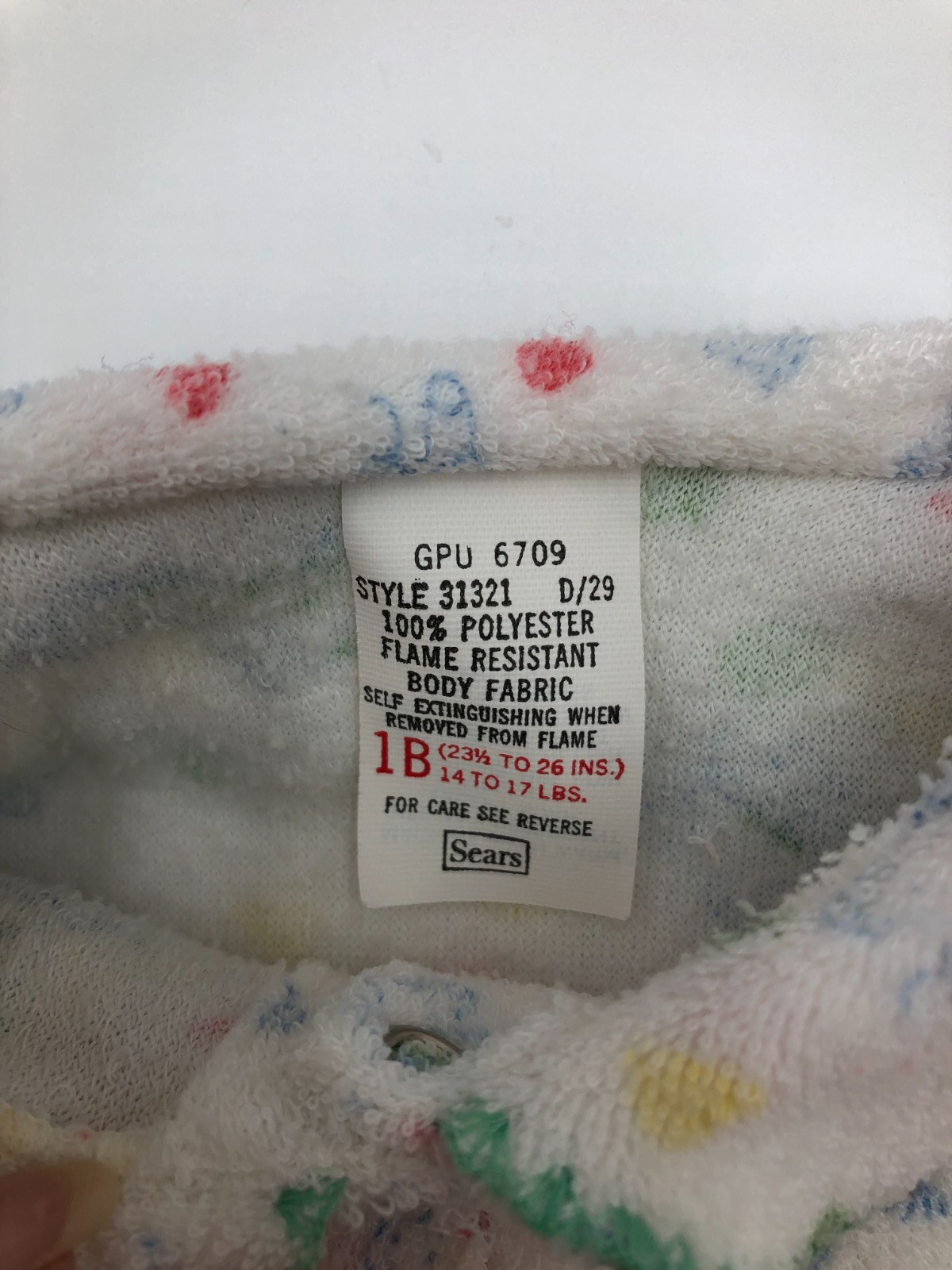 Vintage Sears Baby Girl or Boys Terrycloth Sleeper Size 1B 14 to 17 lbs