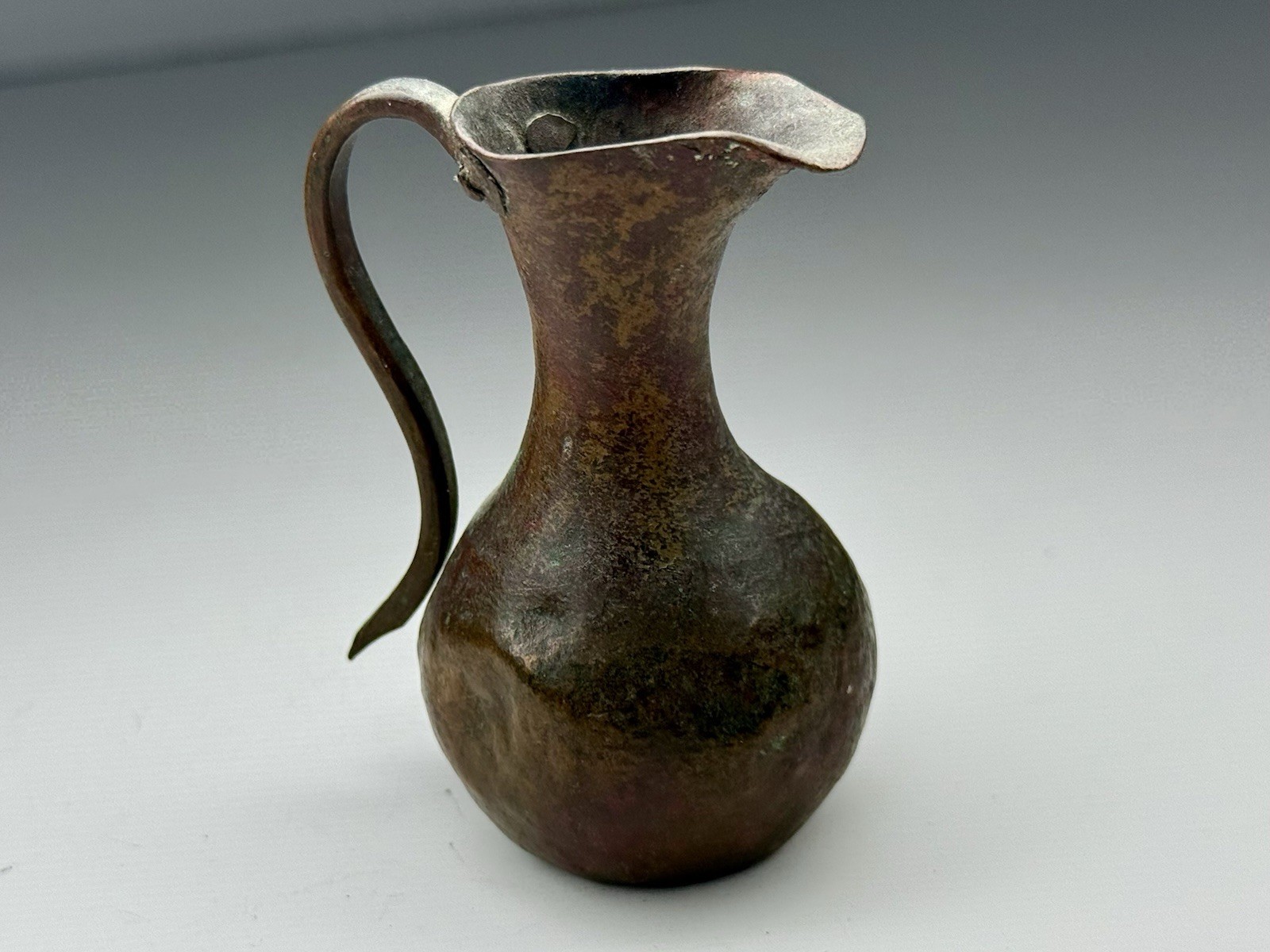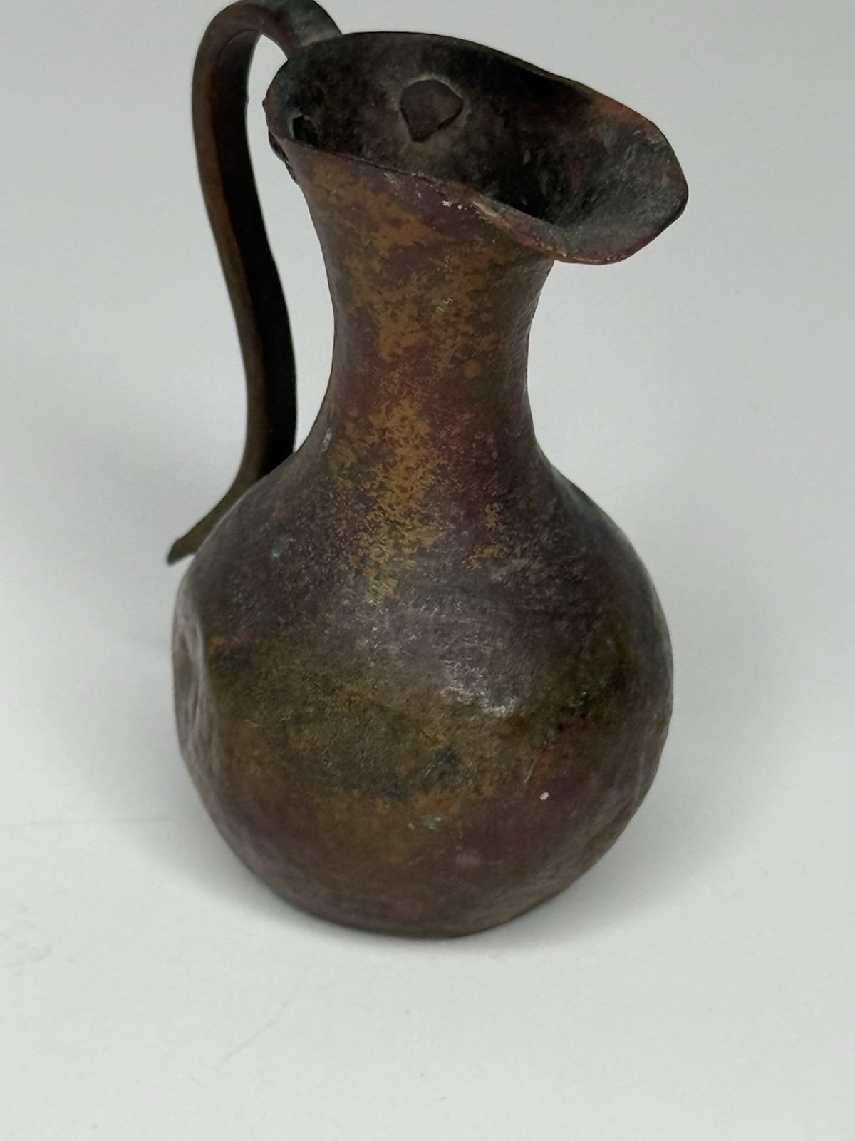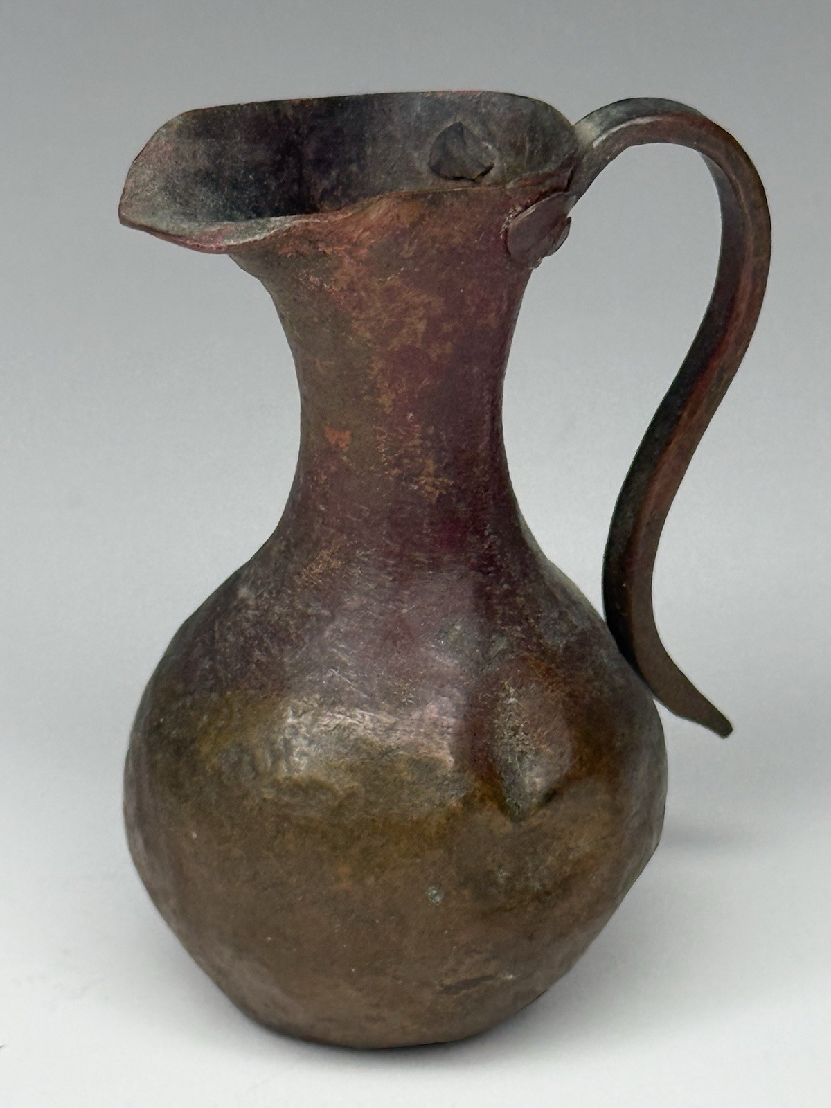 Antique Mini Doll House Hand Hammered Artisanal Rustic Copper Pitcher Riveted