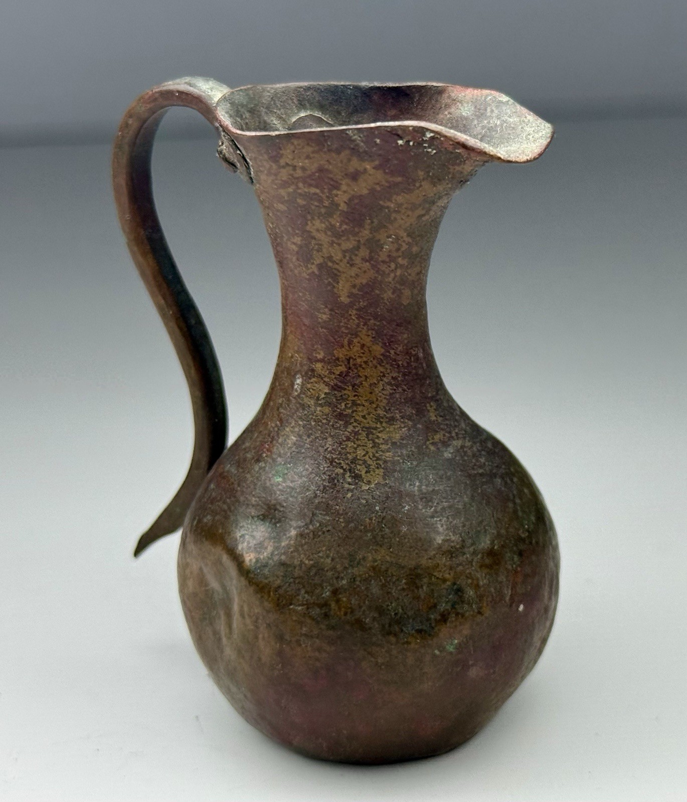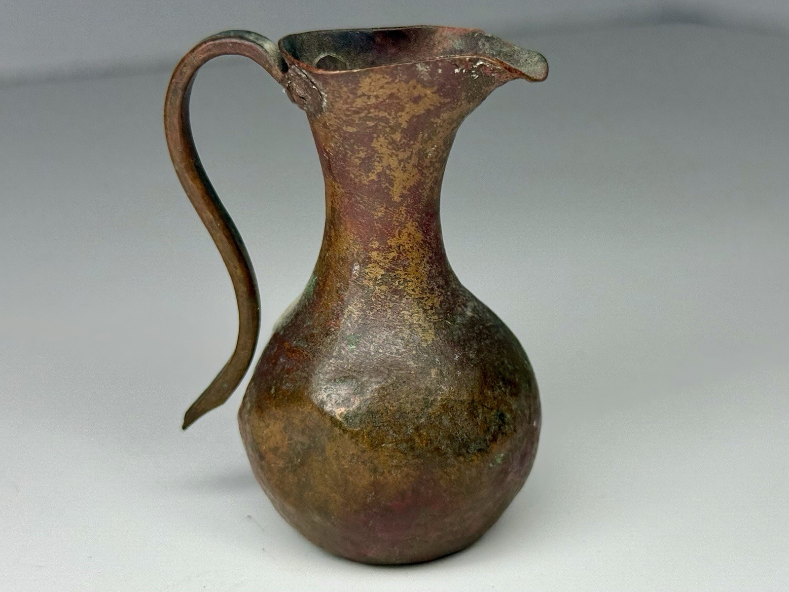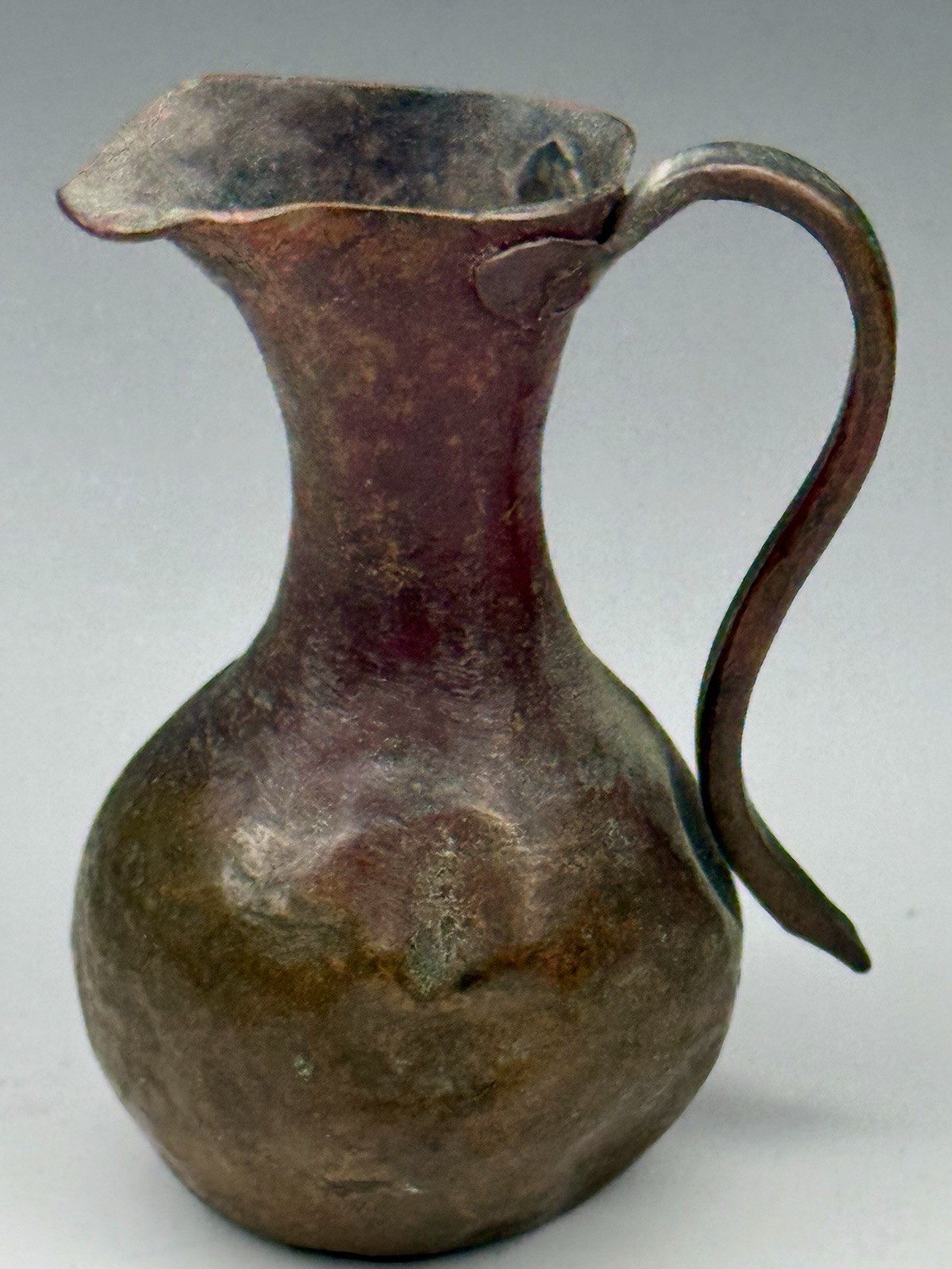 Antique Mini Doll House Hand Hammered Artisanal Rustic Copper Pitcher Riveted
