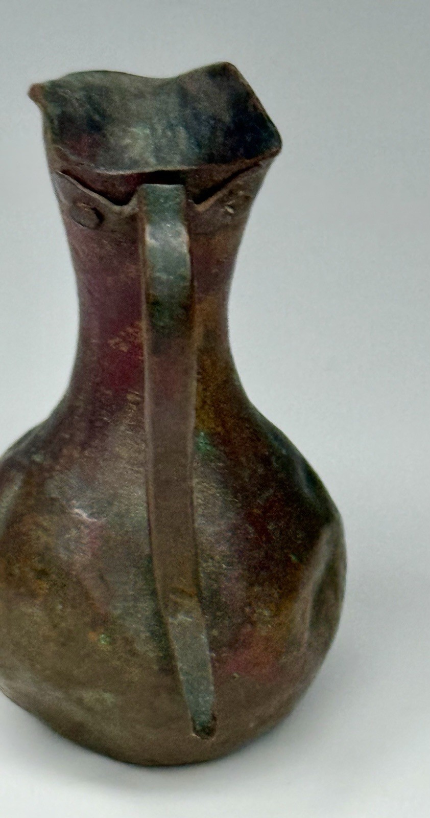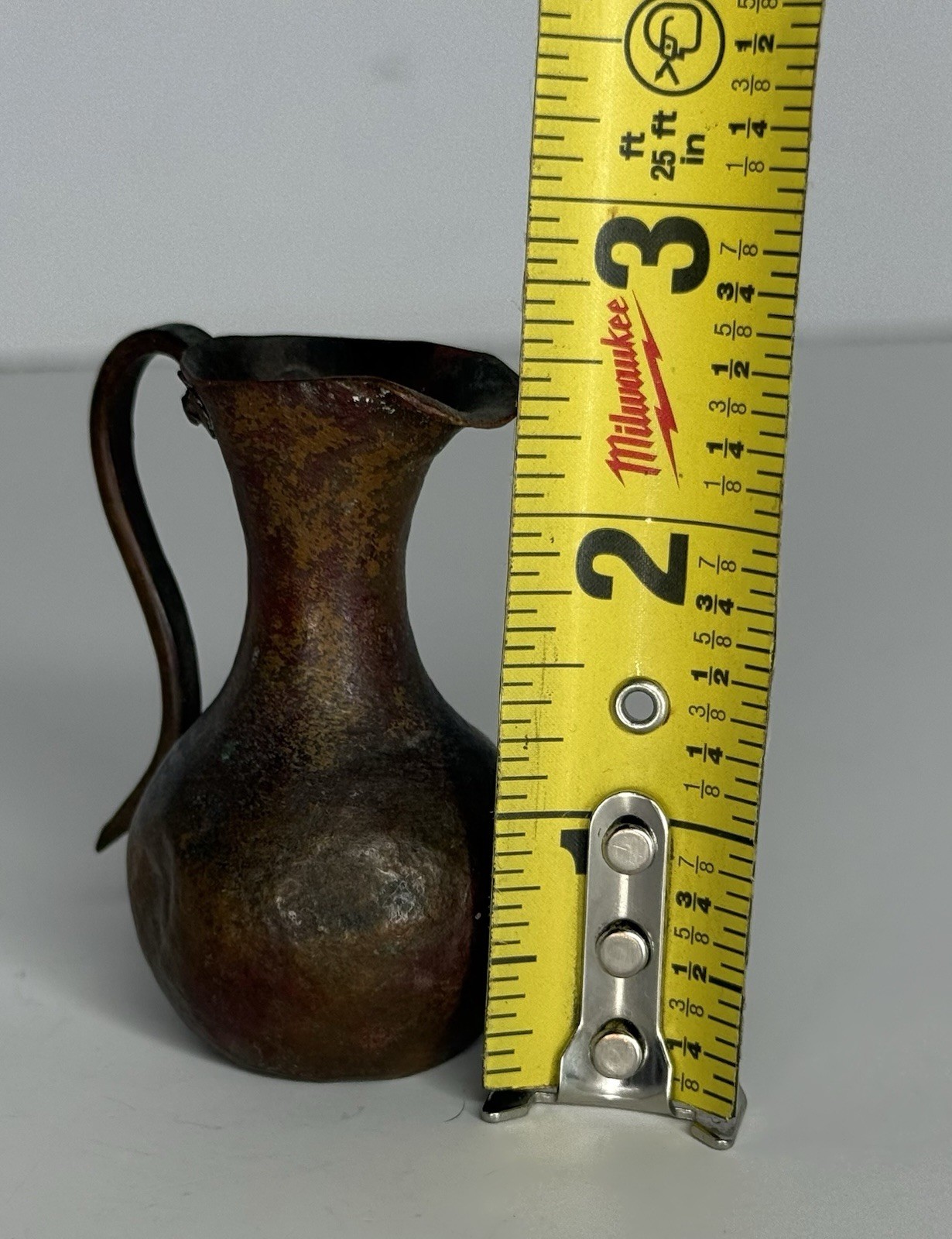 как выглядит Antique Mini Doll House Hand Hammered Artisanal Rustic Copper Pitcher Riveted фото