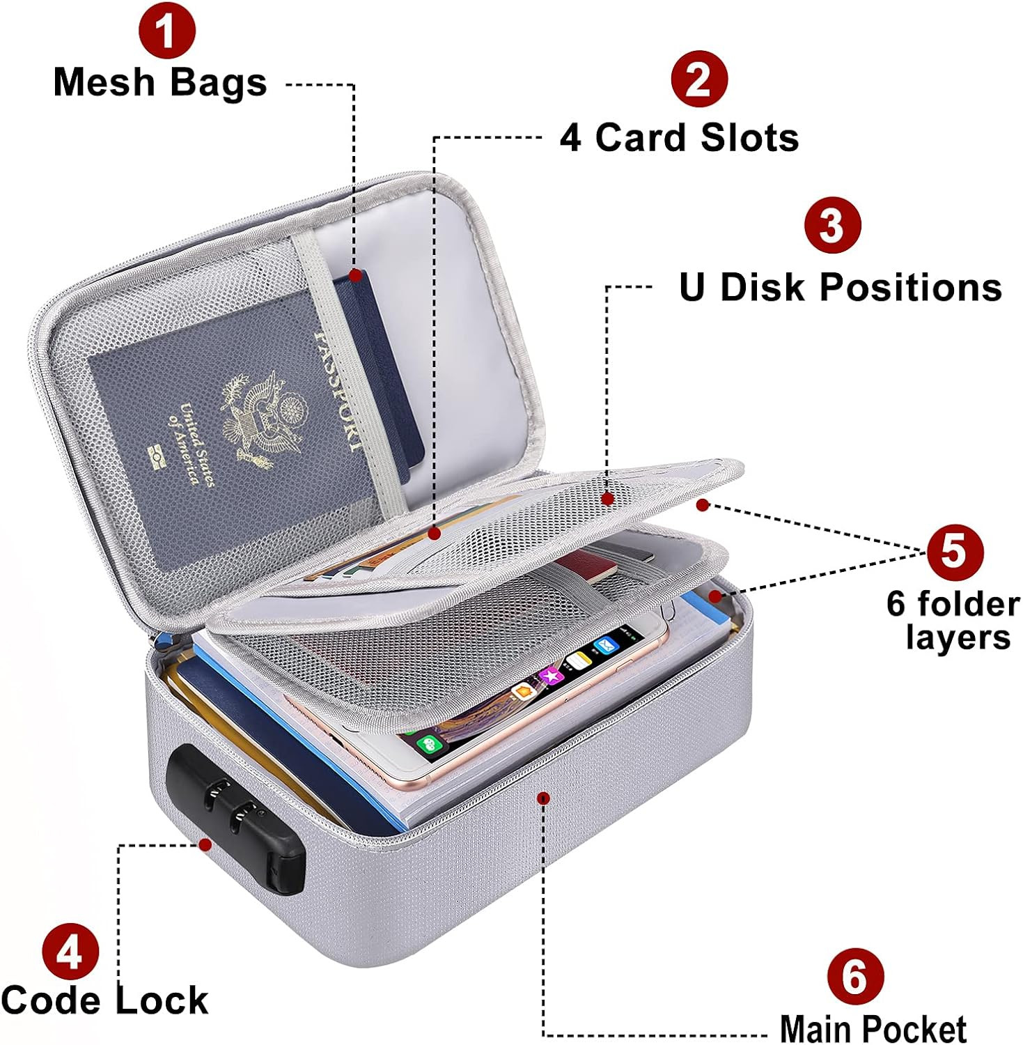 Small Fireproof Storage Organizer Case with Lock 9 X 5.3 X 3.7 , Soft Money Saf