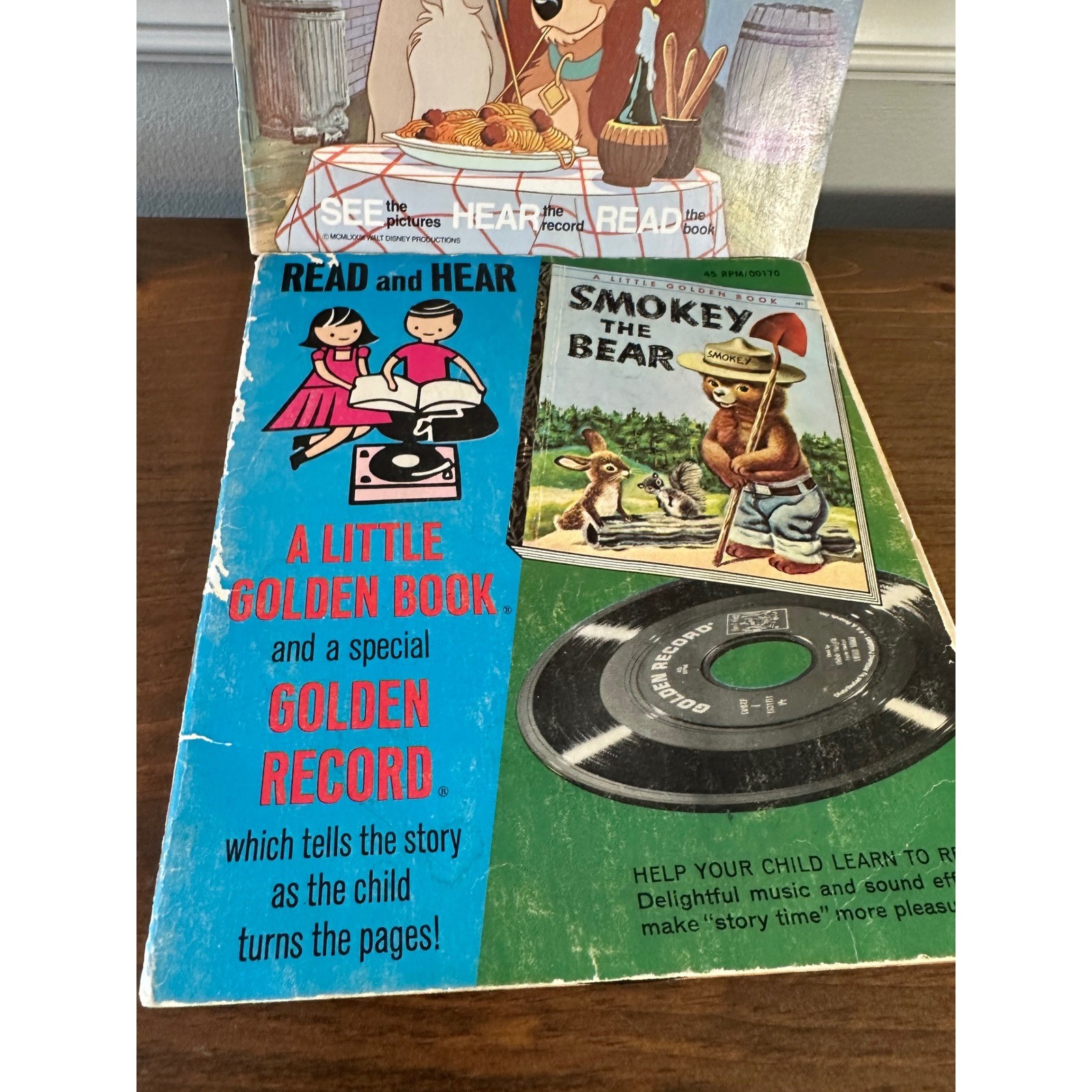 Walt Disney Lady Tramp and Smokey Bear Little Golden Book and Records Set