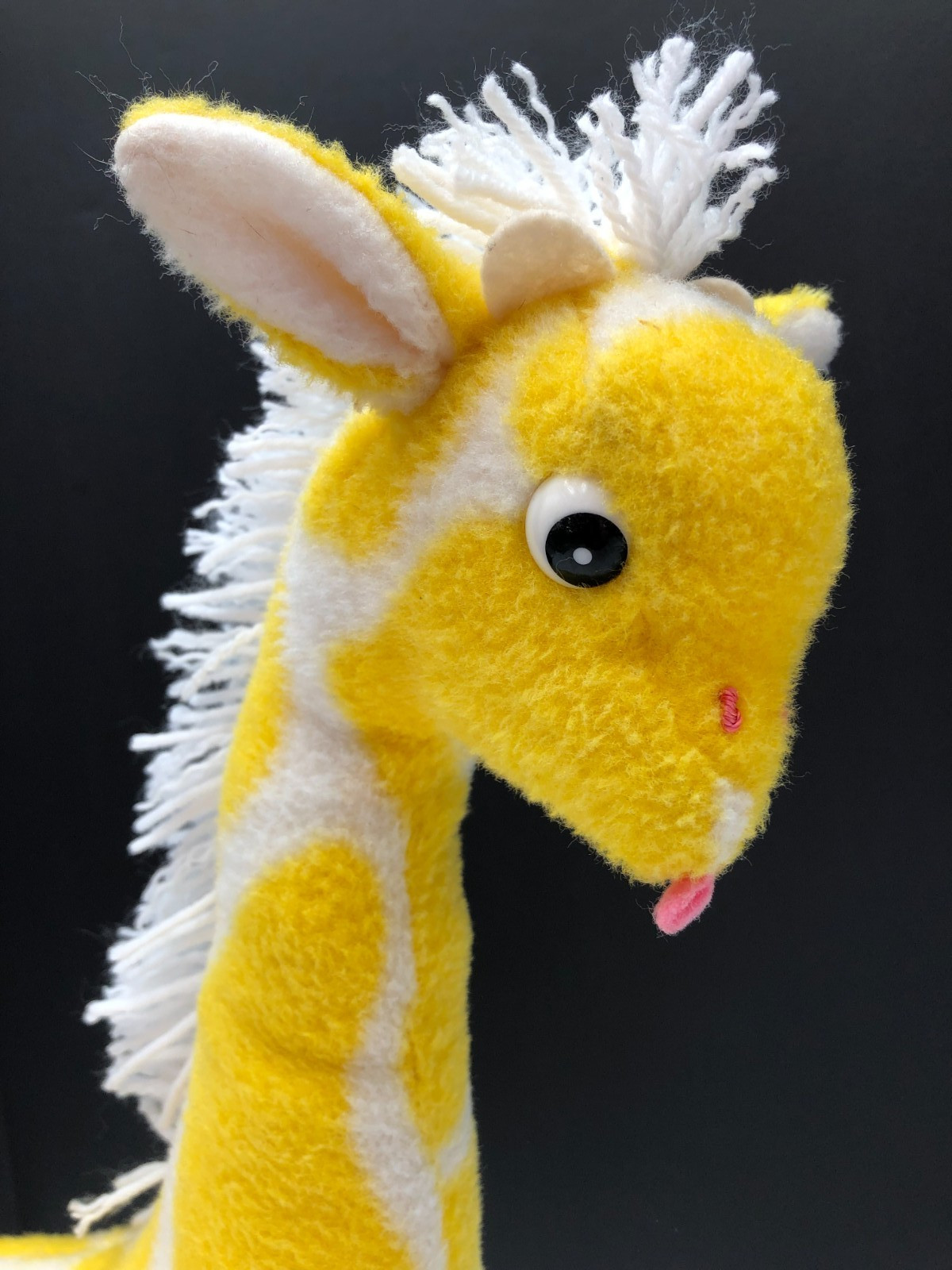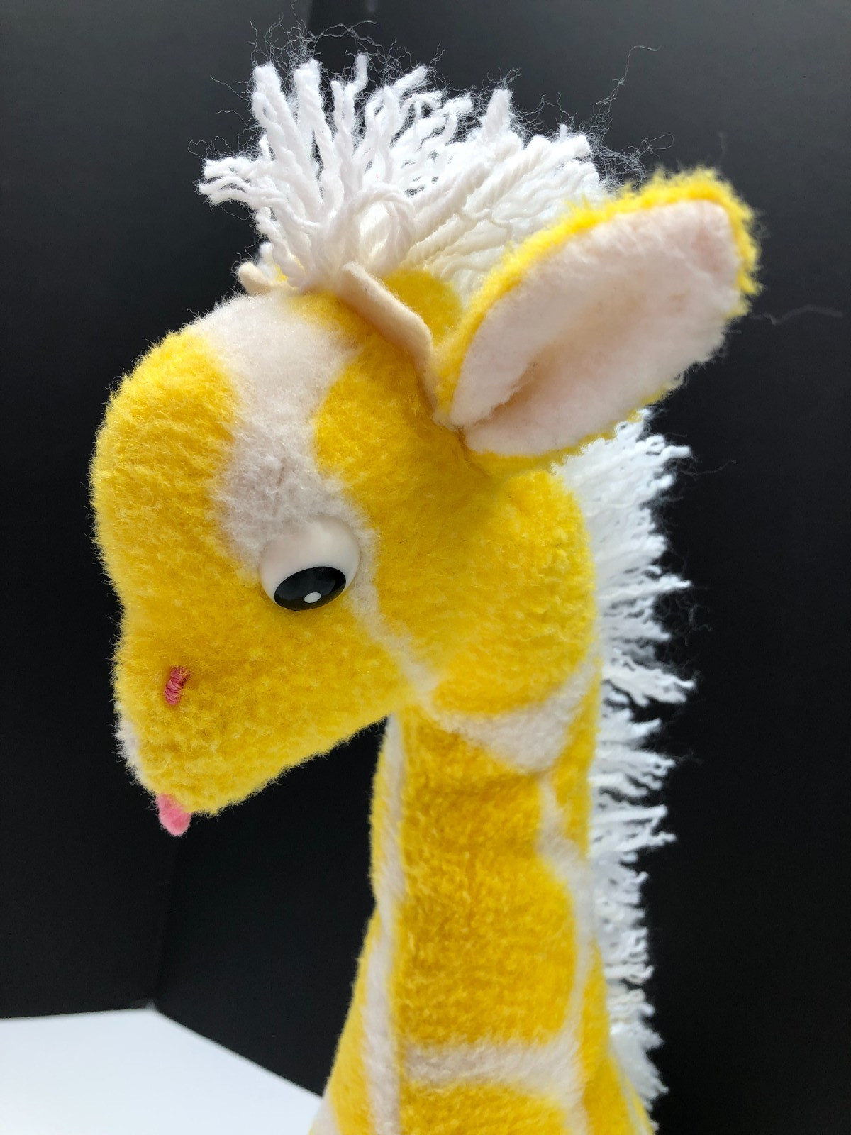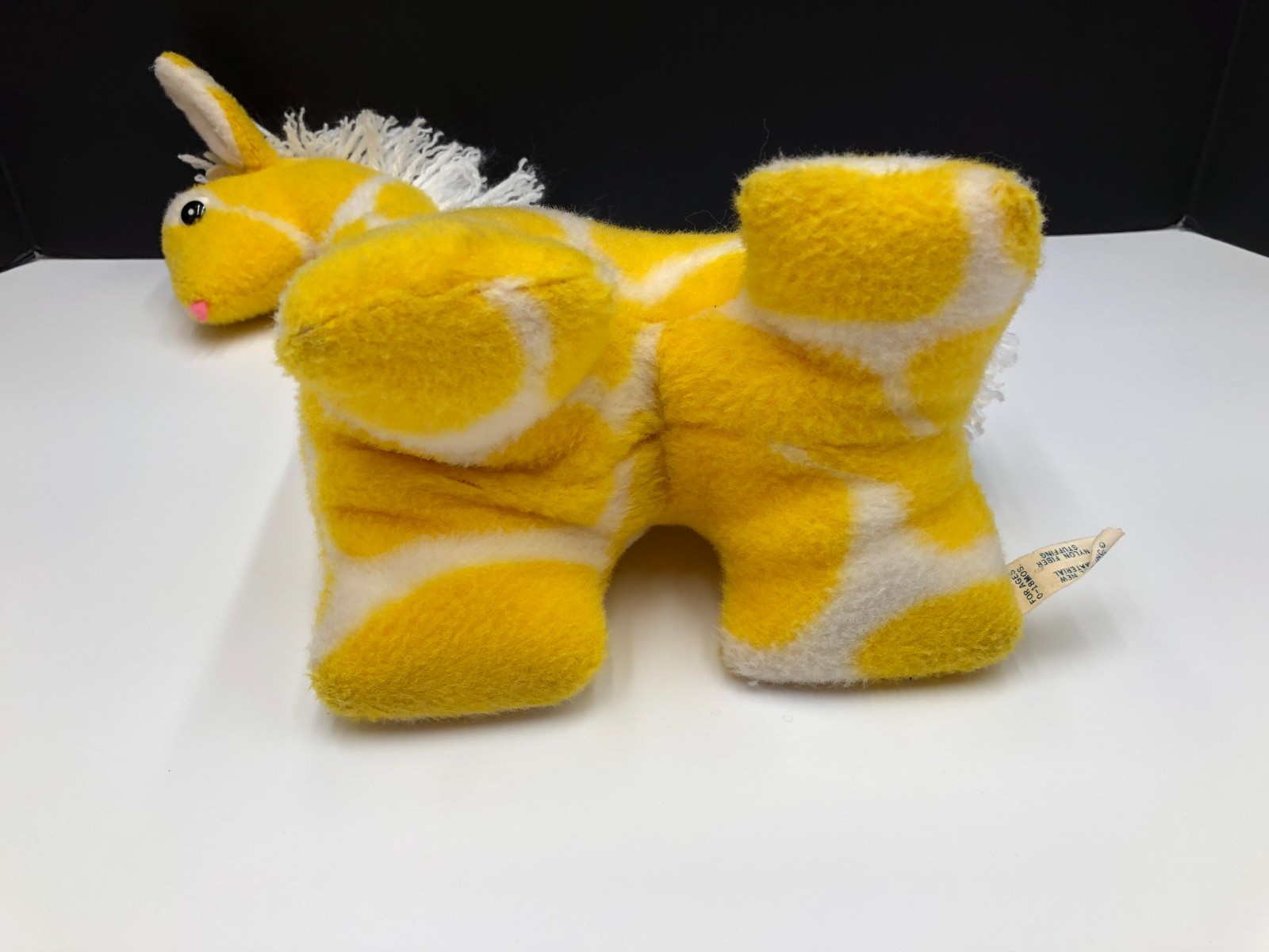 как выглядит Vintage Eden Yellow plush musical Rattle "bell" giraffe stuffed baby toy 14" фото