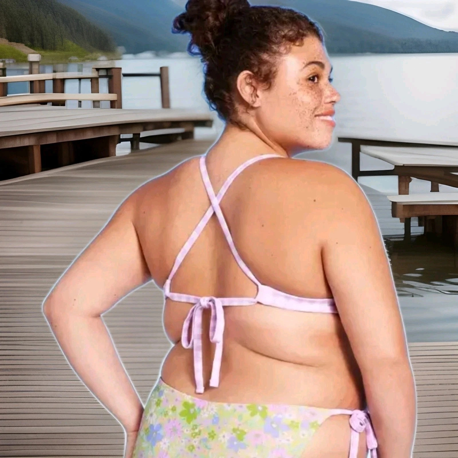 Wild Fable Purple Gingham Floral Reversible Triangle Bikini Swim Top