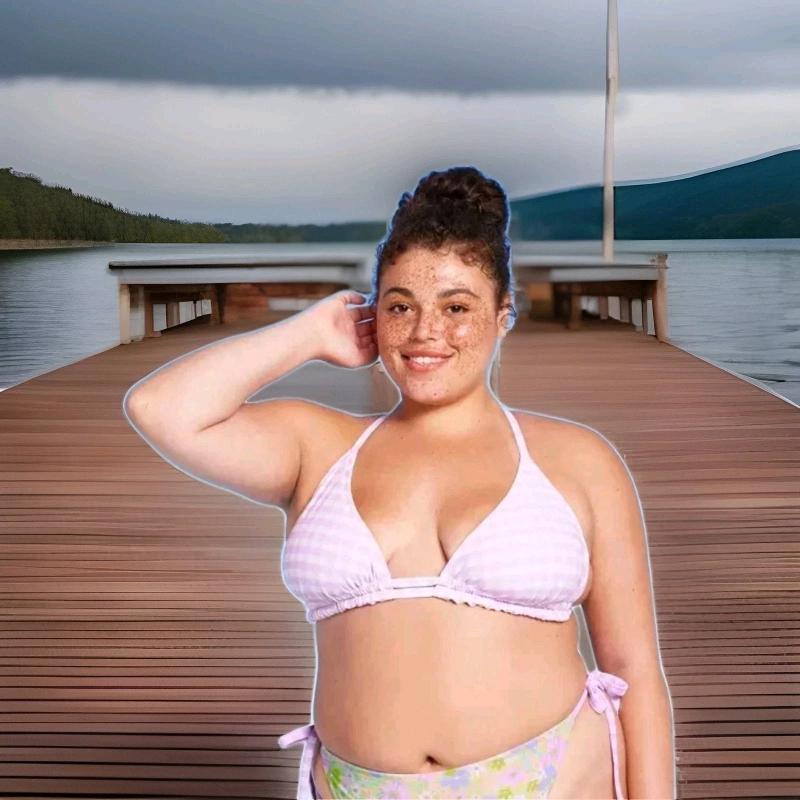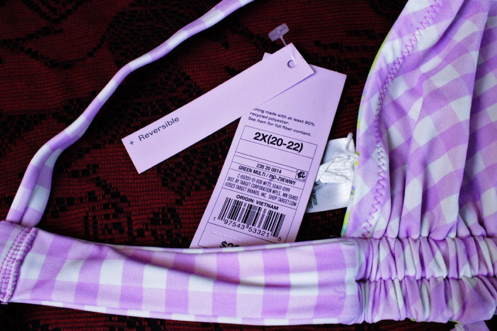как выглядит Wild Fable Purple Gingham Floral Reversible Triangle Bikini Swim Top фото