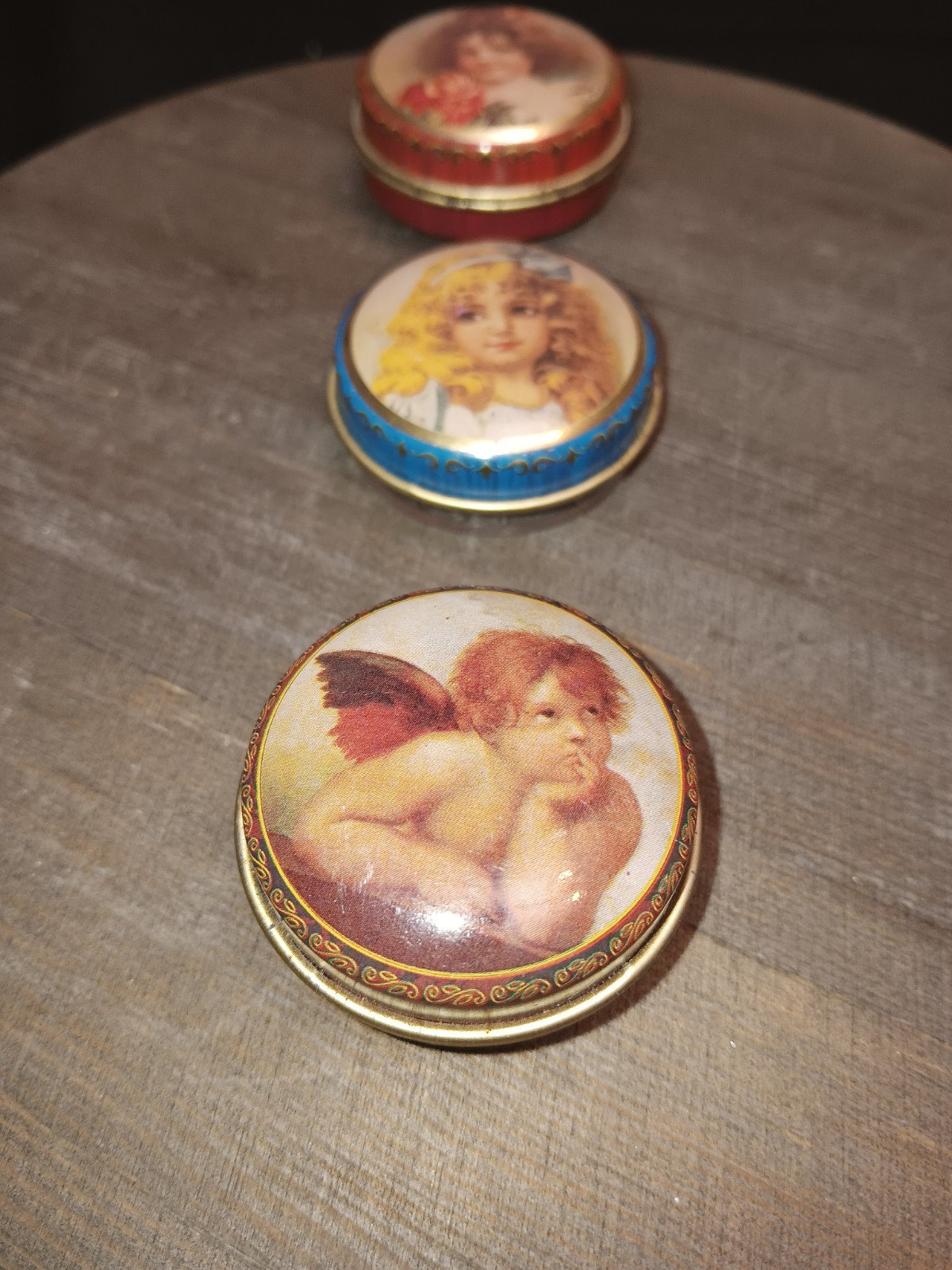 3 Pill Holders Metal Trinket Containers with Lids Travel Size READ