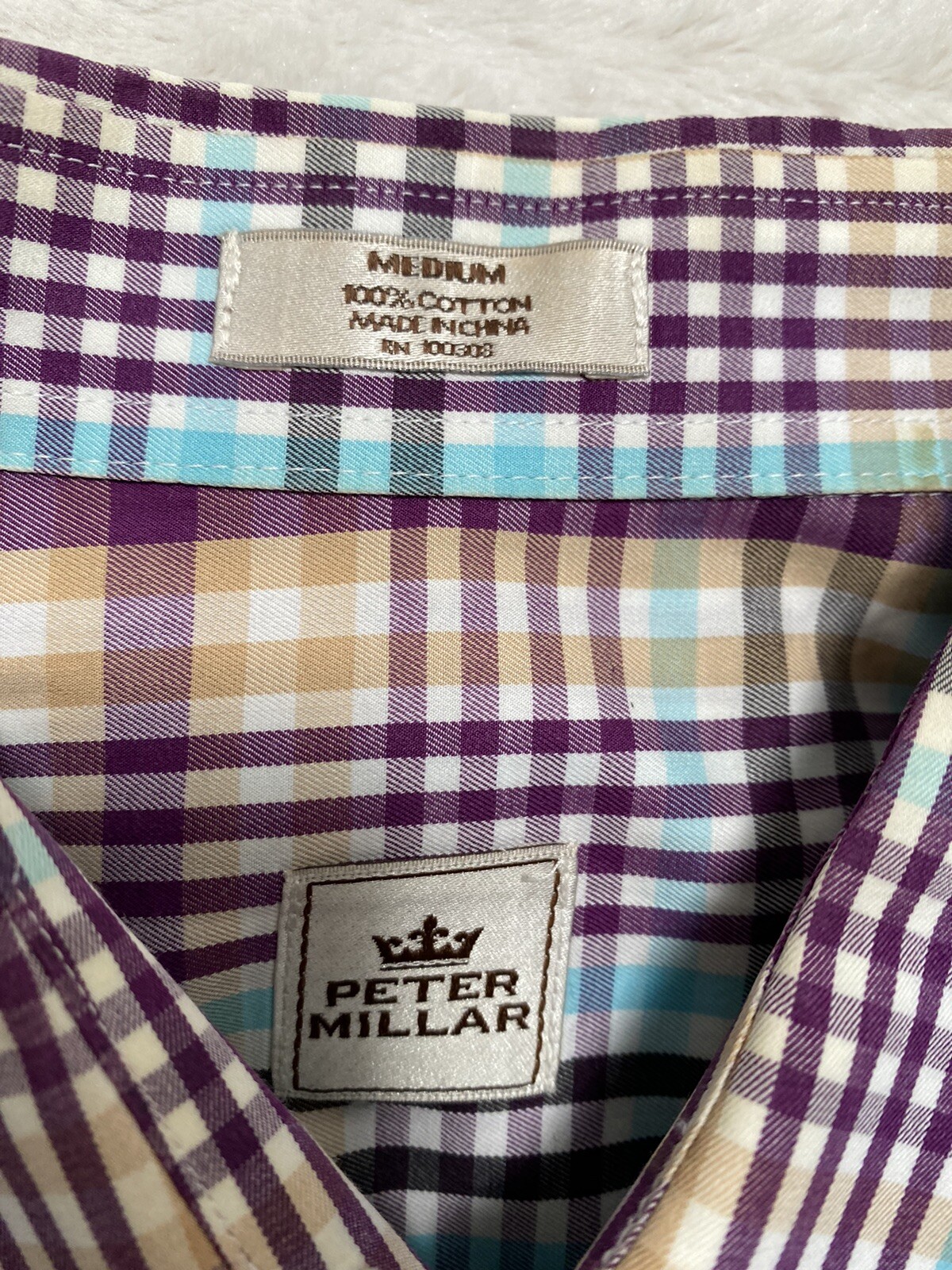 Peter Millar Men s Sz M Long Sleeve Button Down Shirt Purple Plaid Mint Cond
