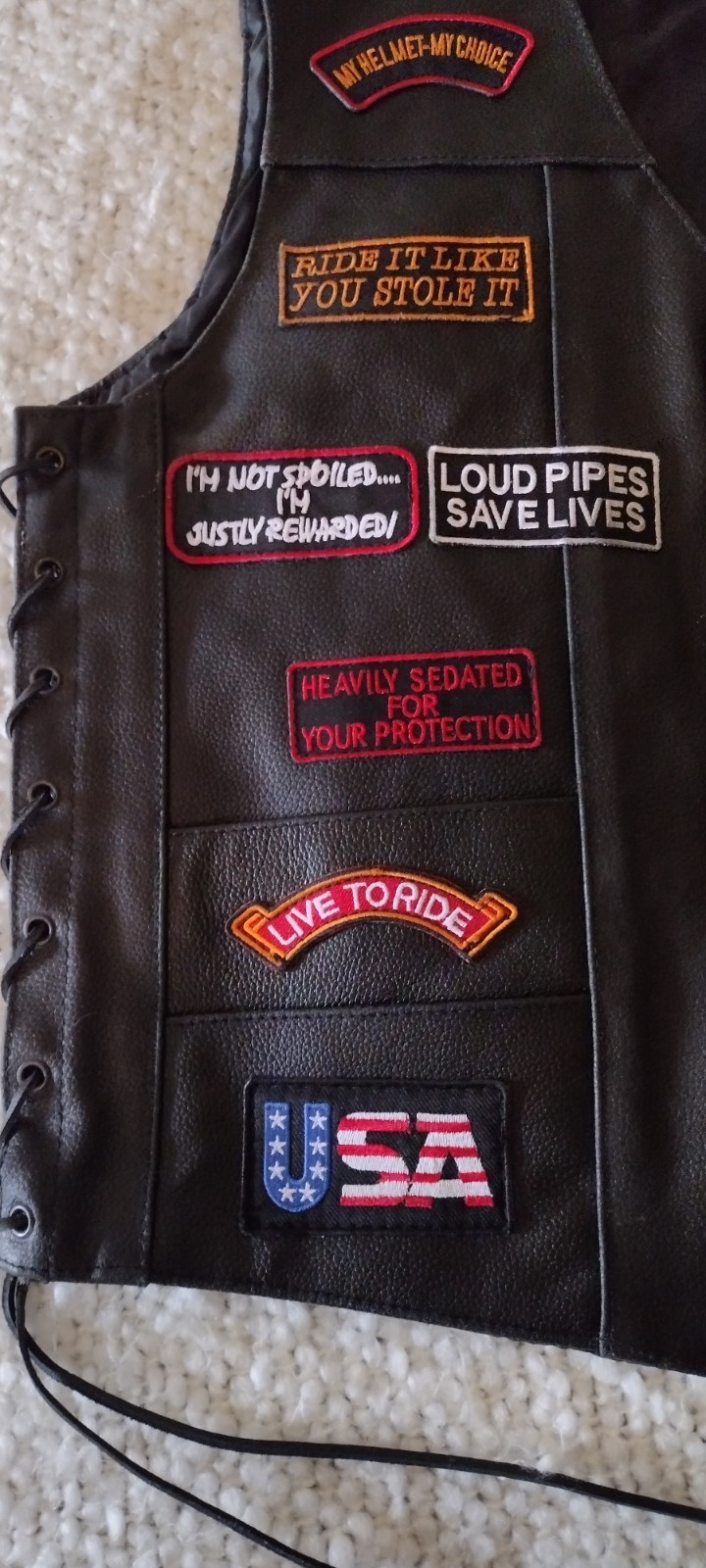 LEATHER BIKER VEST Patched with Gun Pockets - NEW