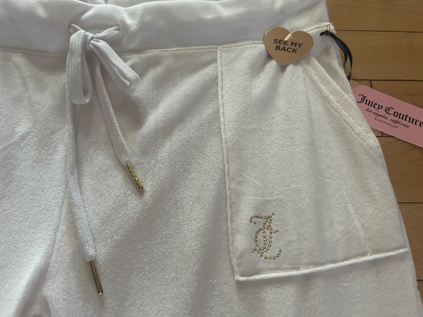 NEW NWT JUICY COUTURE Velour OG Big Bling Sweatpants Pastel Parchment Ivory L