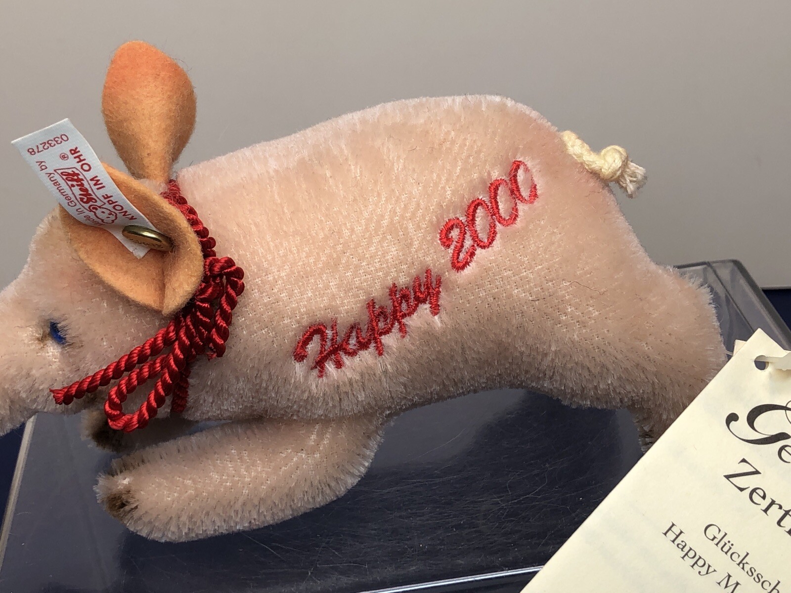 6 Long Pink Mohair Steiff Happy 2000 Piggy Pig Plush Stuffed With Tags U