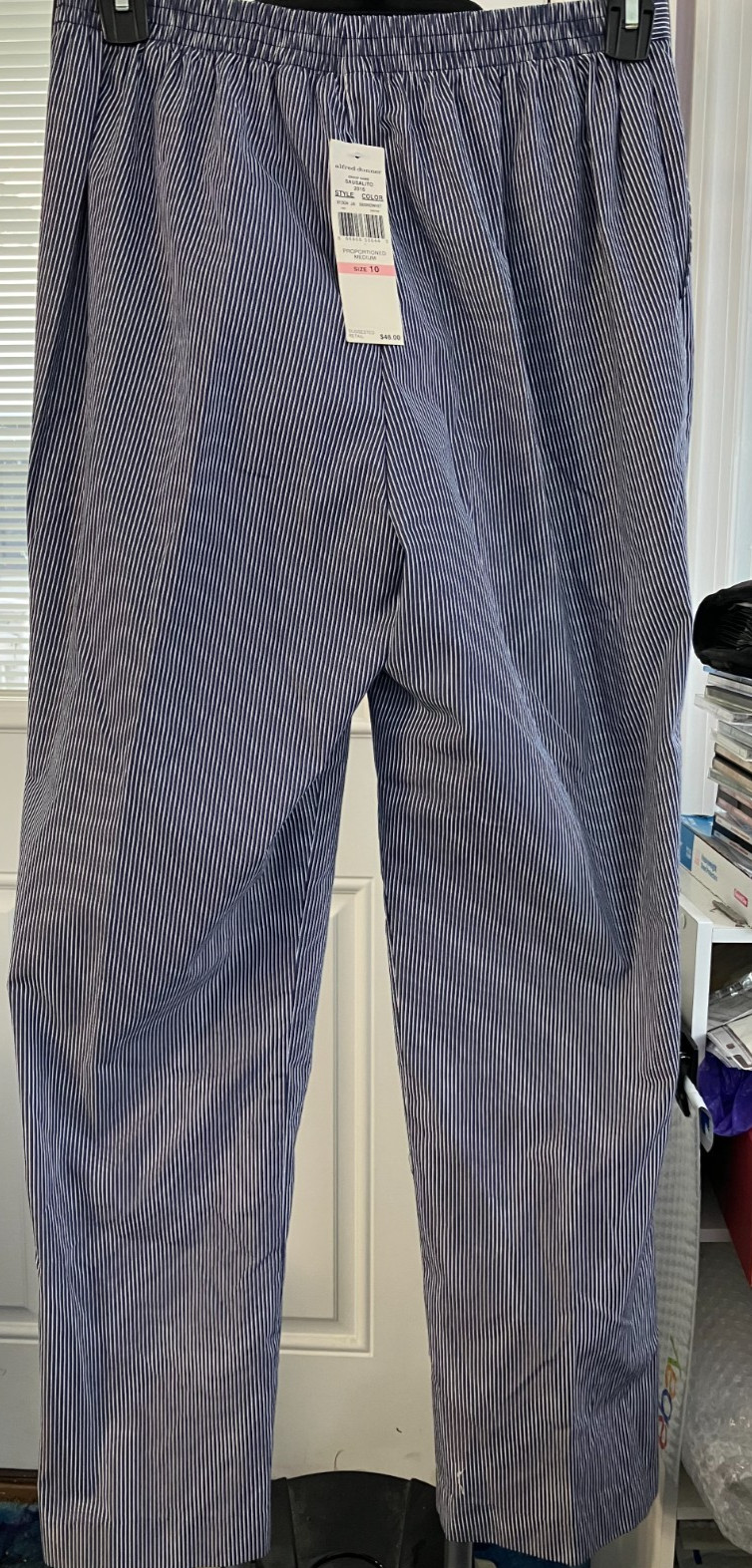 как выглядит NWT SZ 10 ALFRED DUNNER NAVY BLUE WHITE PULL ON PANTS COTTON POLYESTER JA03 фото