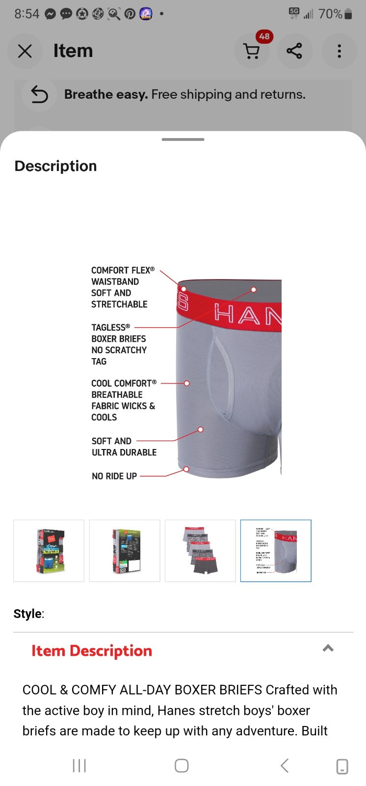 Особенности: All Seasons, Tagless, Breathable, Hanes, Boys, boxes Briefs, underwear, performance, 4 way stretch, X-Temp