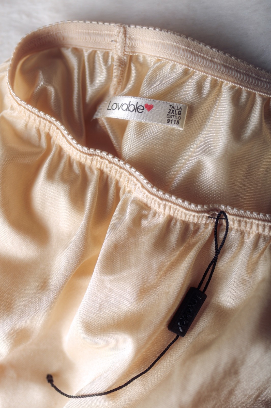 Vintage Lovable Soft Satin Pettipants 2X 2XL Knee Beige Retro Glam NWOT