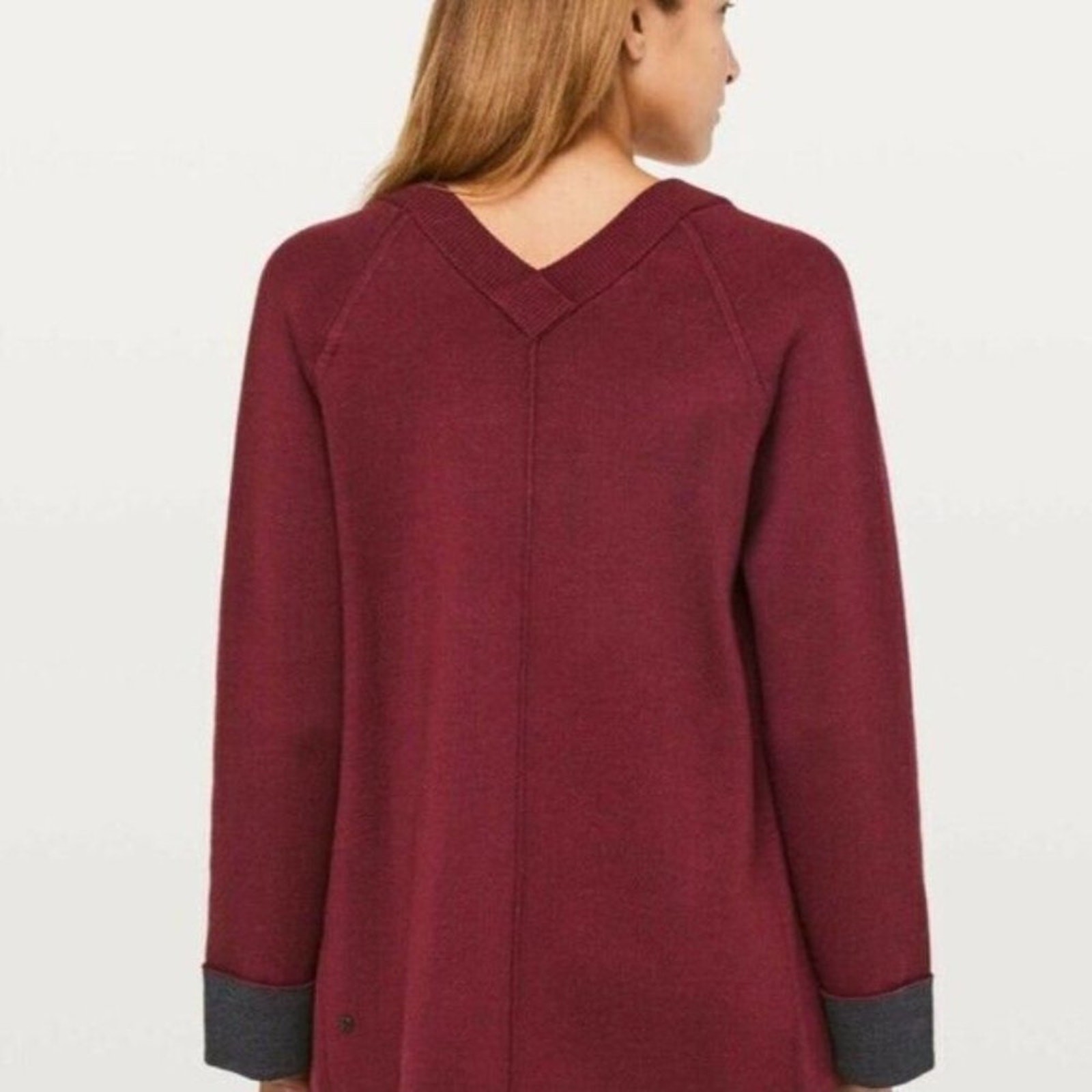 как выглядит Lululemon Merino Wool Reverse Me Wrap Reversible Cardigan SIZE 4 Maroon Sweater фото
