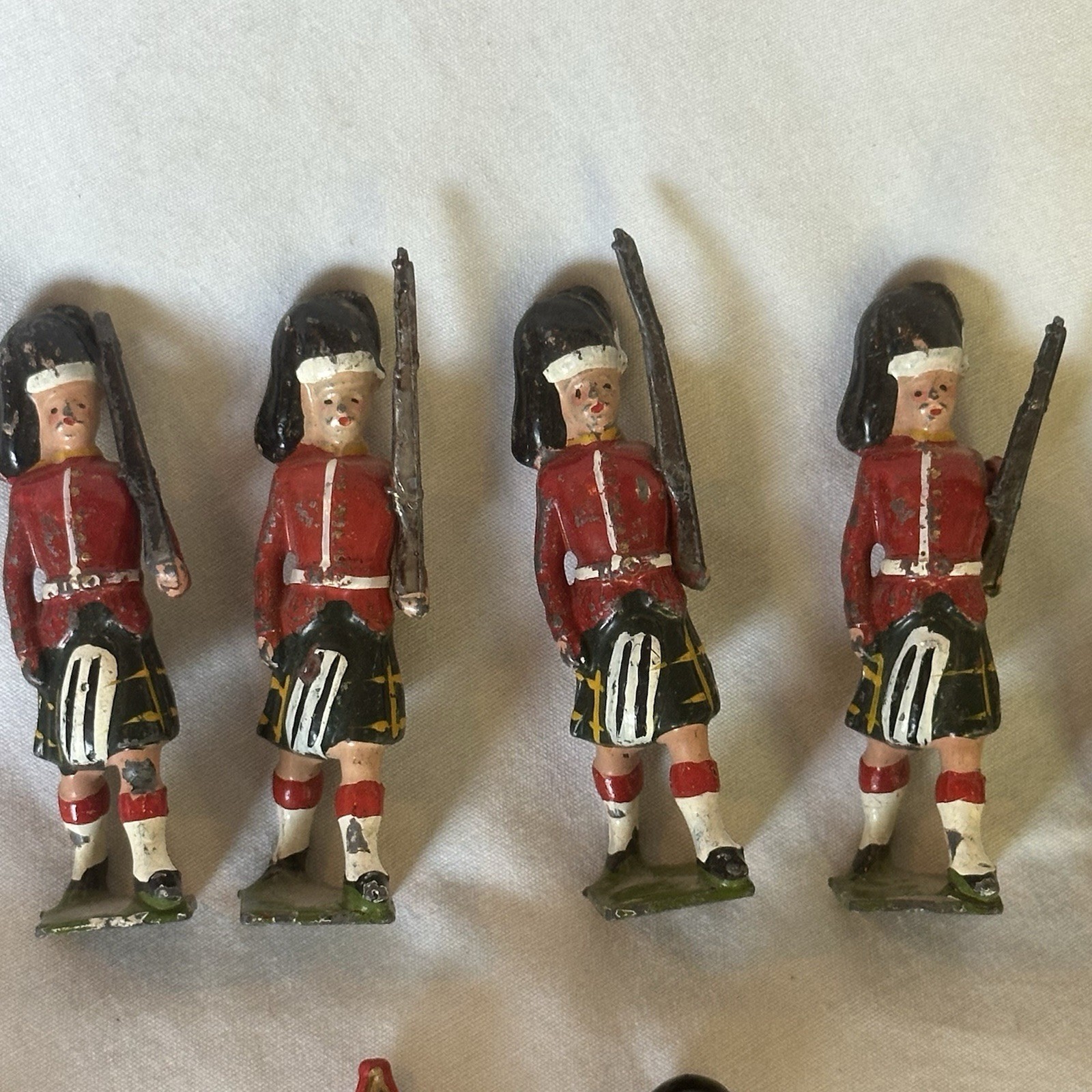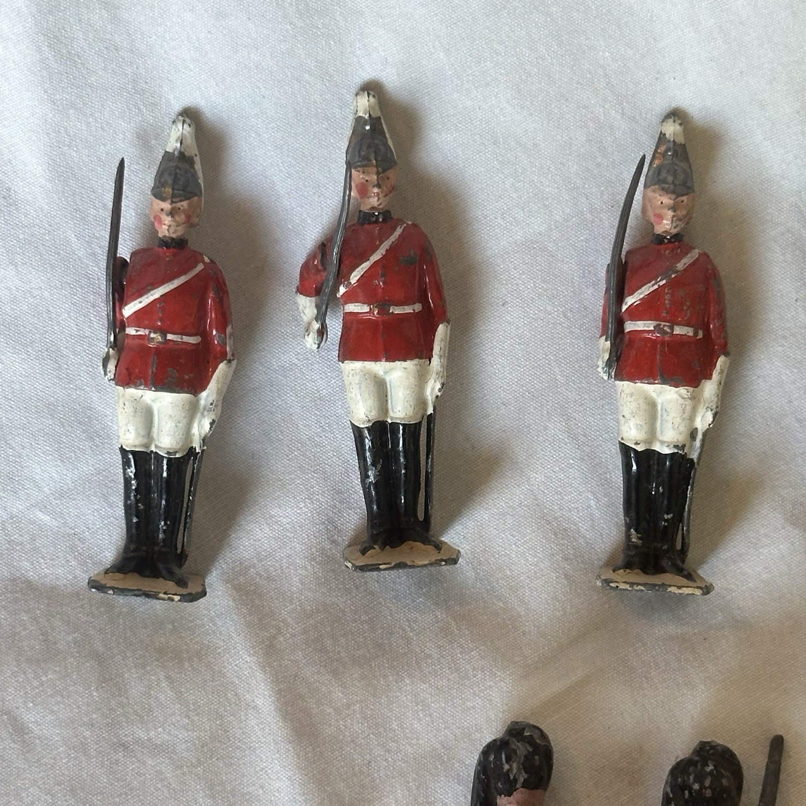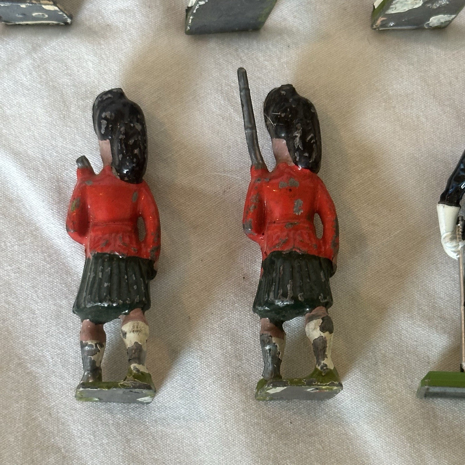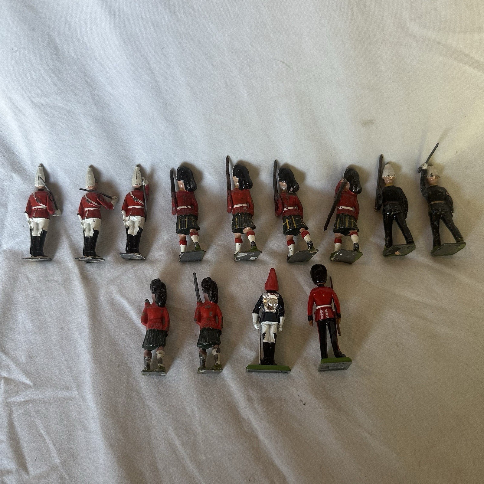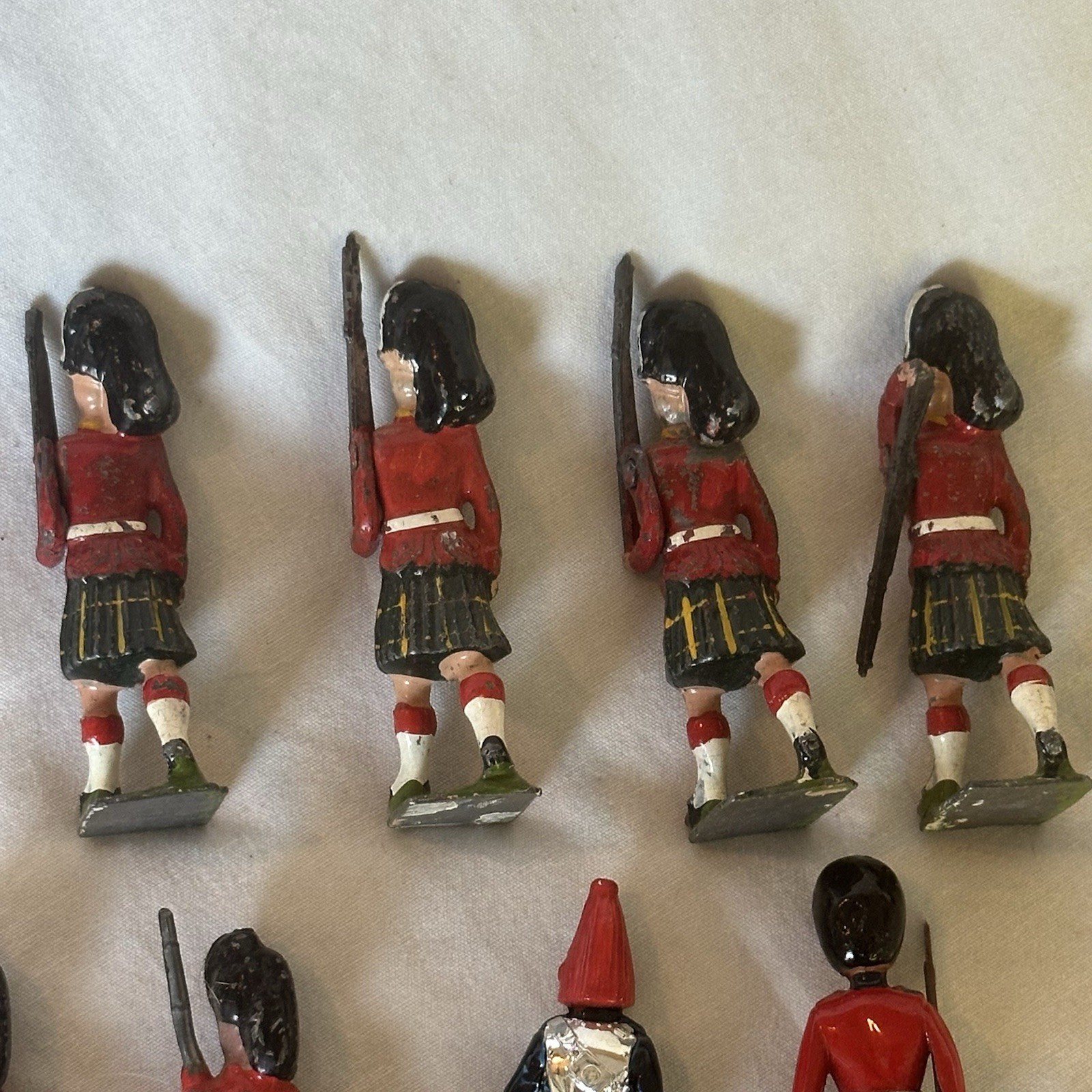 Antique Toy British Soldiers Lead 13 Piece Lot Moving Arms 2 1/2 Tall England