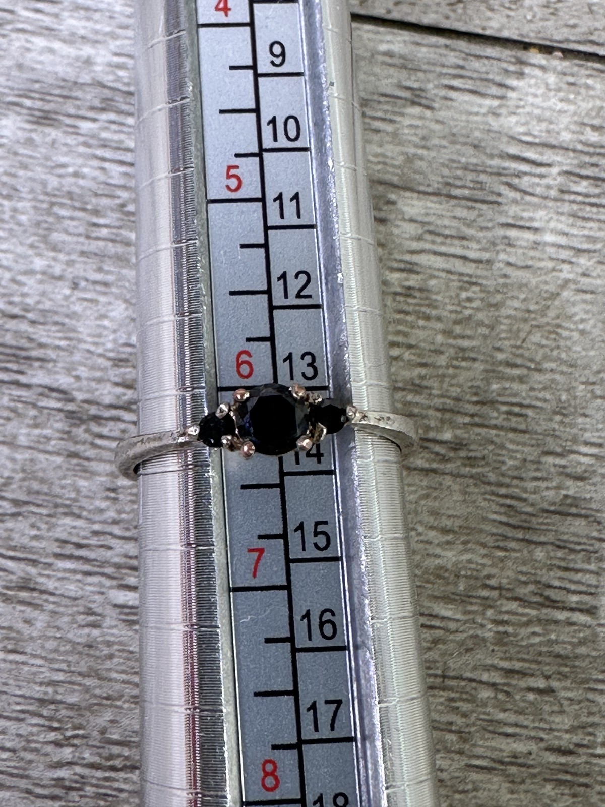как выглядит Elegant Sterling Silver Black Sapphire Three Stone Ring US Size 6.5 Fine Jewelry фото