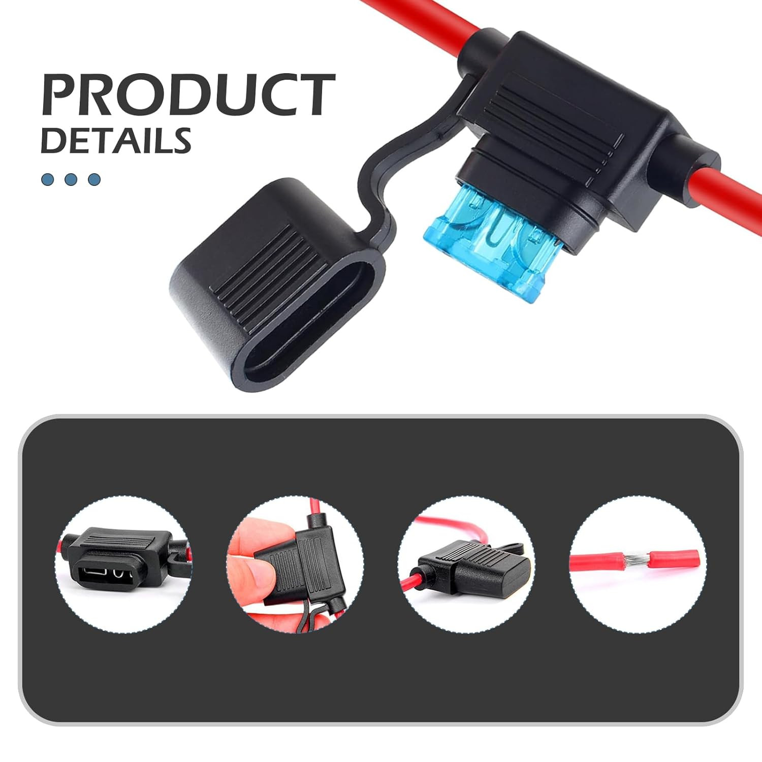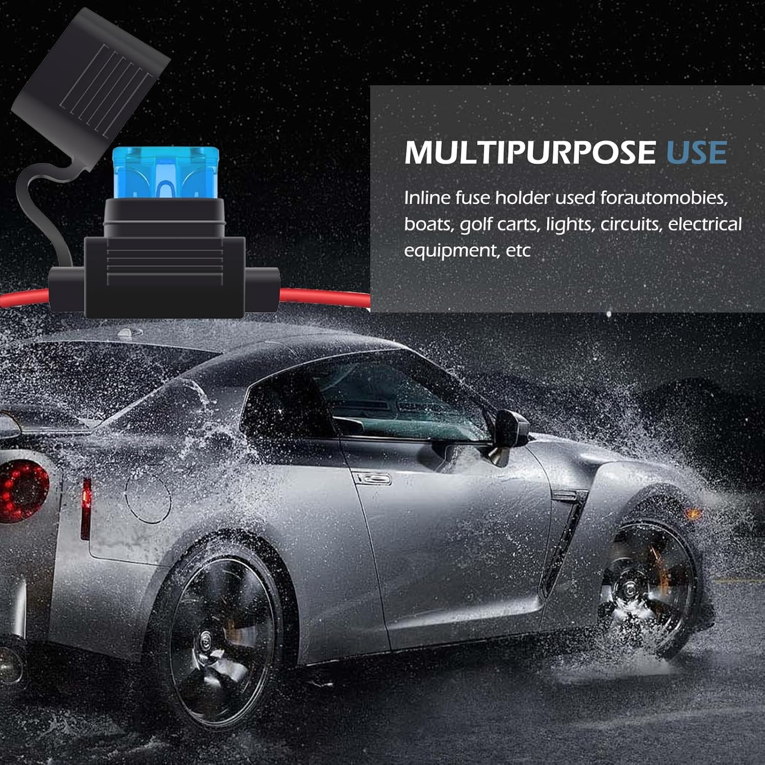 2PCS Fuse Holder, Inline 12V 18AWG Car Gauge Inline Fuse with 10A ATC/ATO Standa