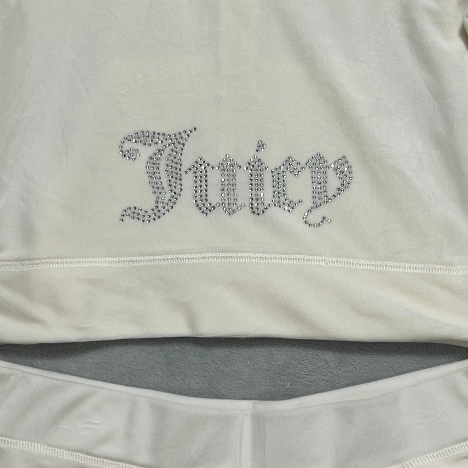 как выглядит Juicy Couture OG Bling Velour Tracksuit Hoodie with Shorts LARGE Oyster NEW фото