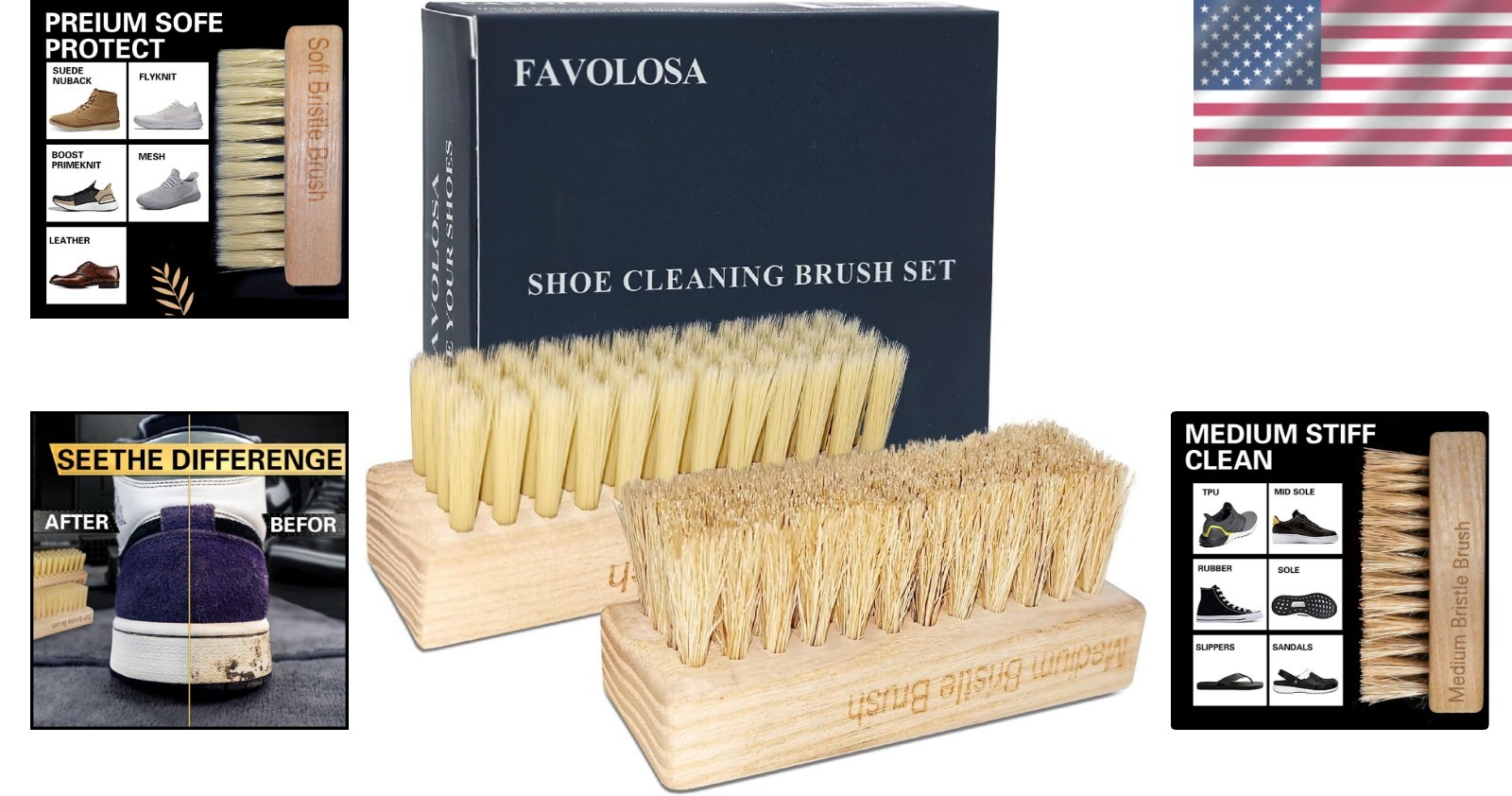Portable Shoe Cleaning Brush Kit: Soft Medium Bristles for All Materials