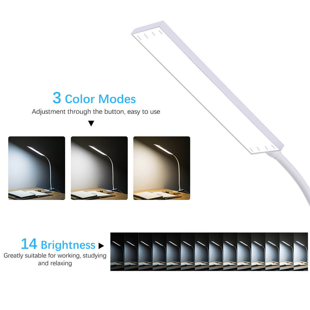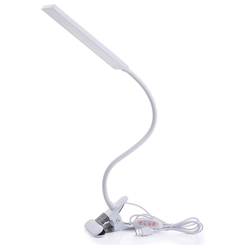 5W Flexible Gooseneck Tube USB Charge Clip-On Metal Adjustable 3 Color Desk Lamp
