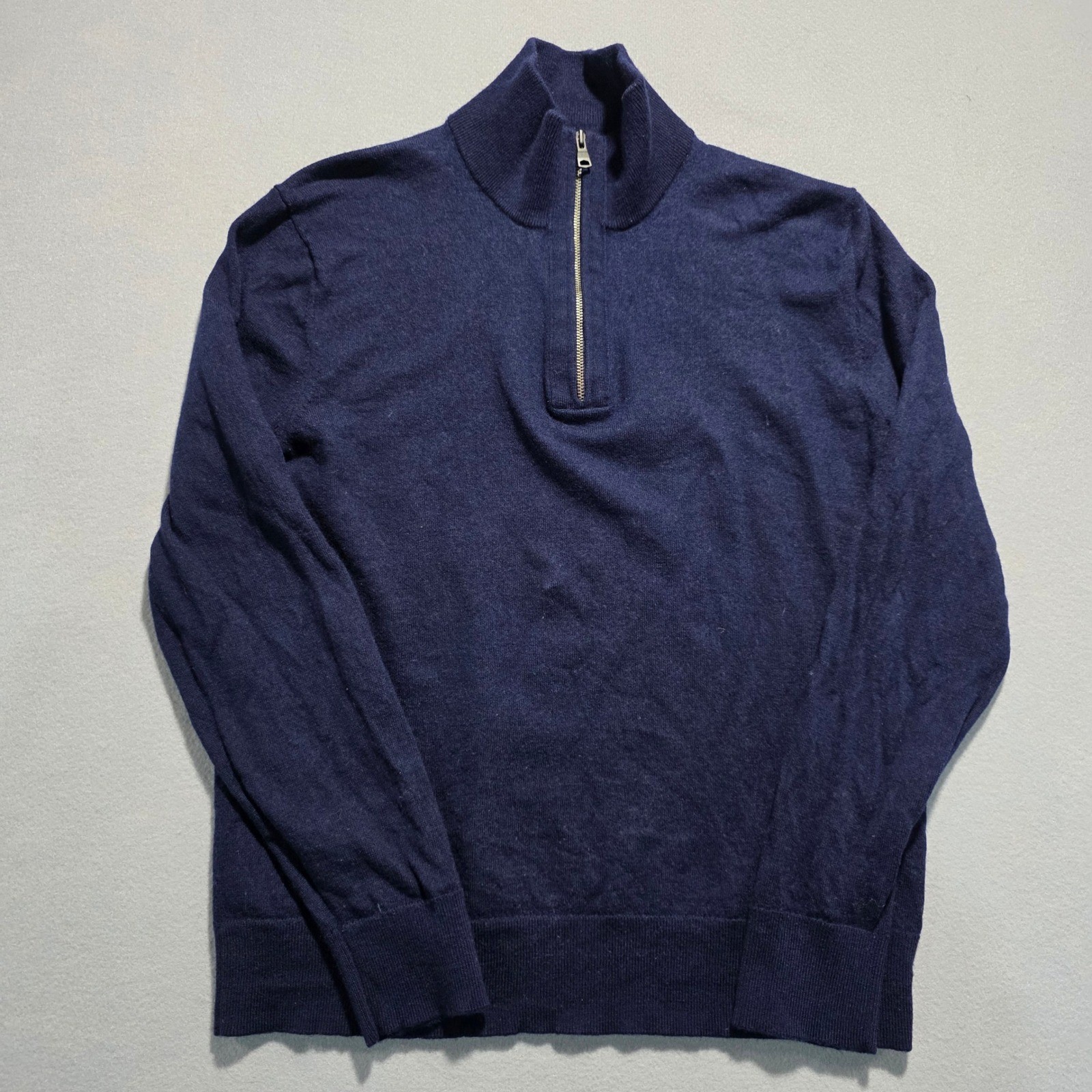 как выглядит Banana Republic Mens Merino Wool 1/4 Zip Pullover Sweater Navy Blue Size M фото