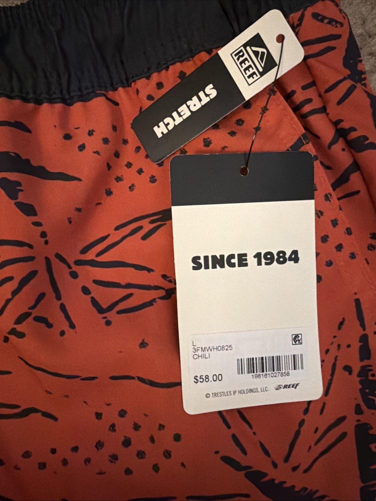 NWT REEF Mens Size L Large Swim Trunks Orange Black 17 Outseam