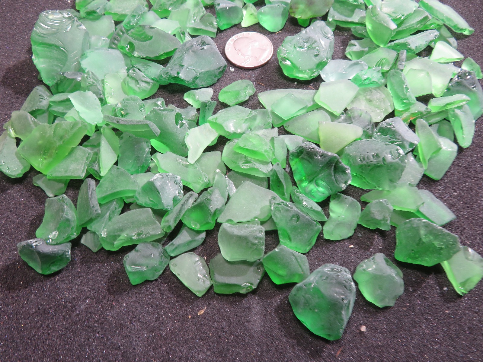 BEACH SEA GLASS SURF TUMBLED GREEN LOT OVER LOTS of PIECES 15.95oz