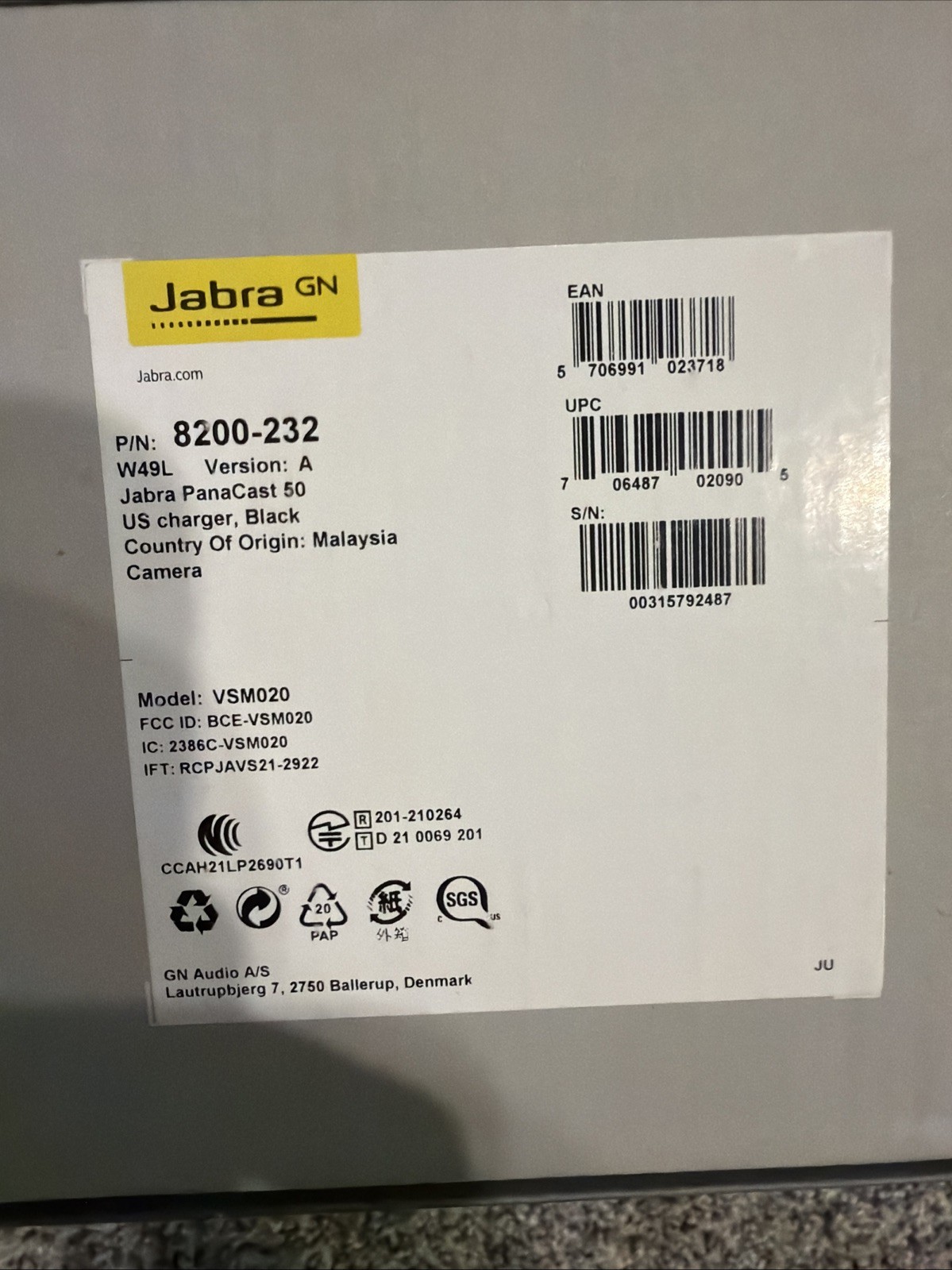 JABRA PanaCast 50 VIDEO CONFERENCE BAR VSM020 180 Degree View 4k 82-09005 - New