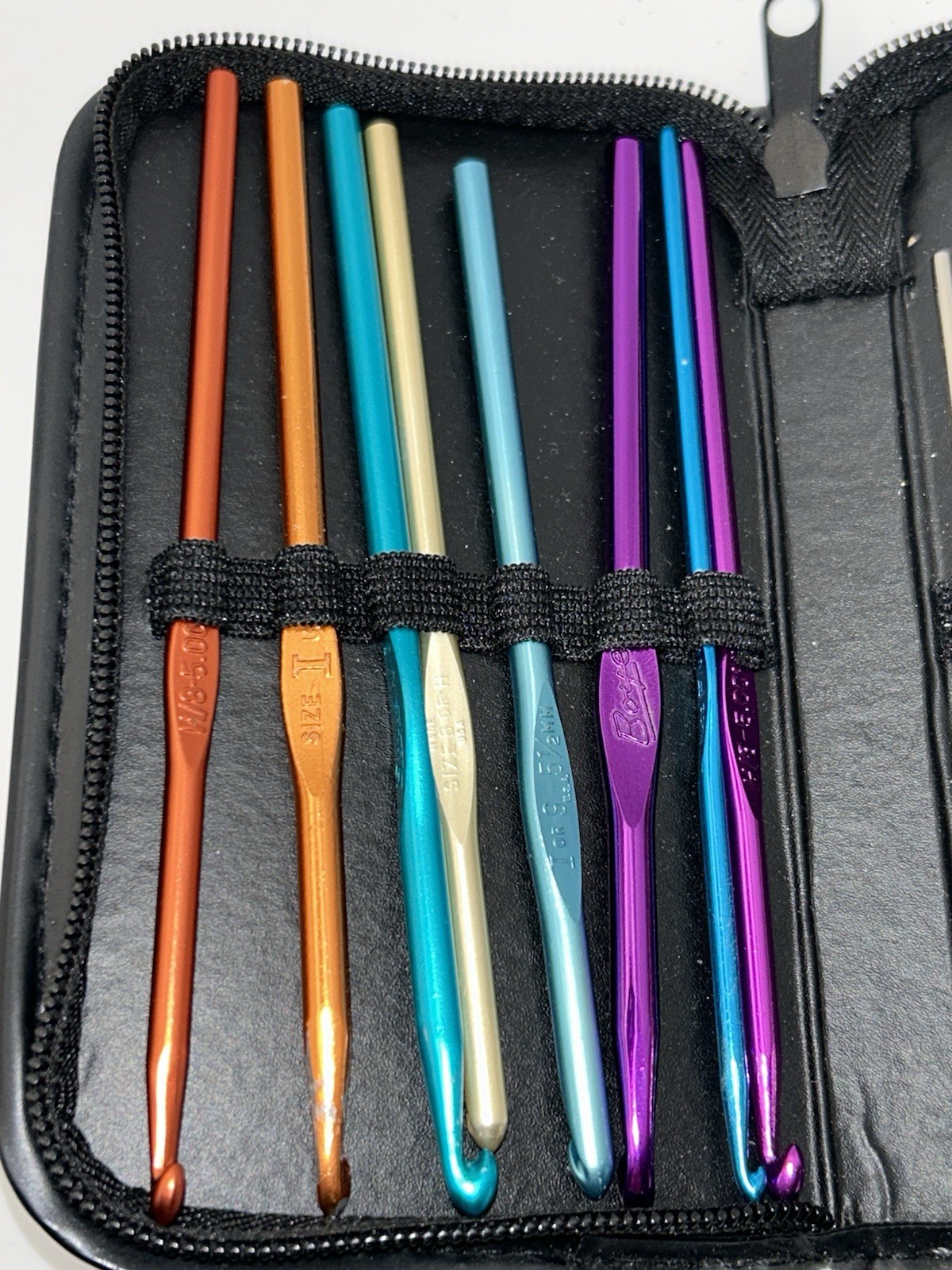 как выглядит Vintage Lot of 20 Metal Boye Crochet Hooks in Zipper Case Mixed Sizes фото