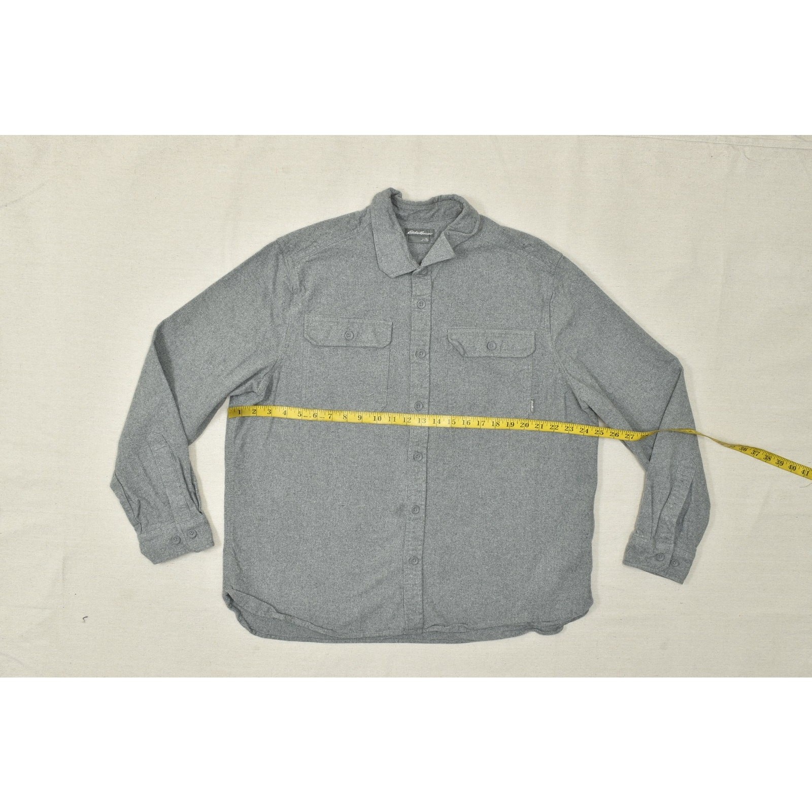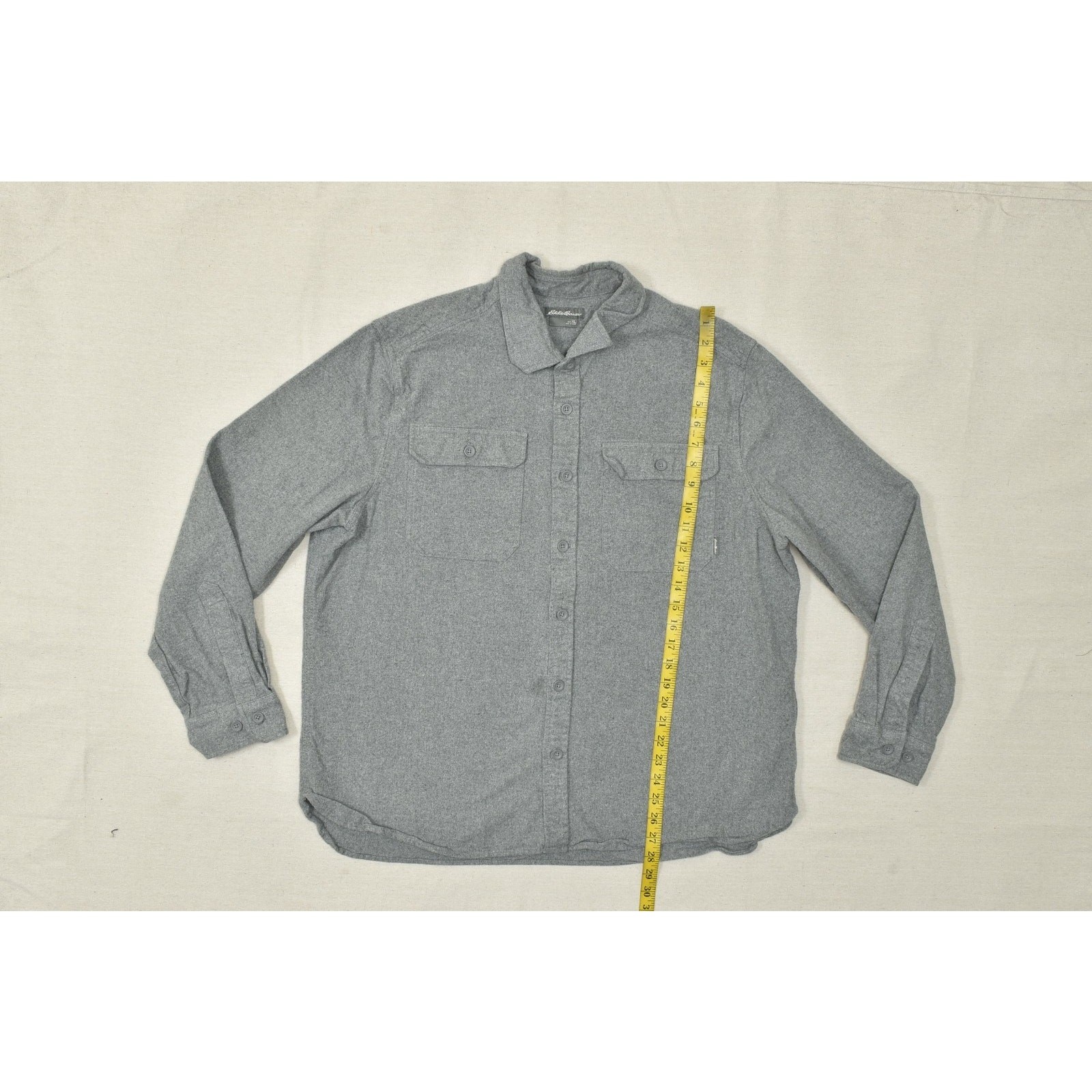 как выглядит Eddie Bauer Mens Gray Flannel Button Up Shirt Long Sleeve Solid Cotton Size XL фото