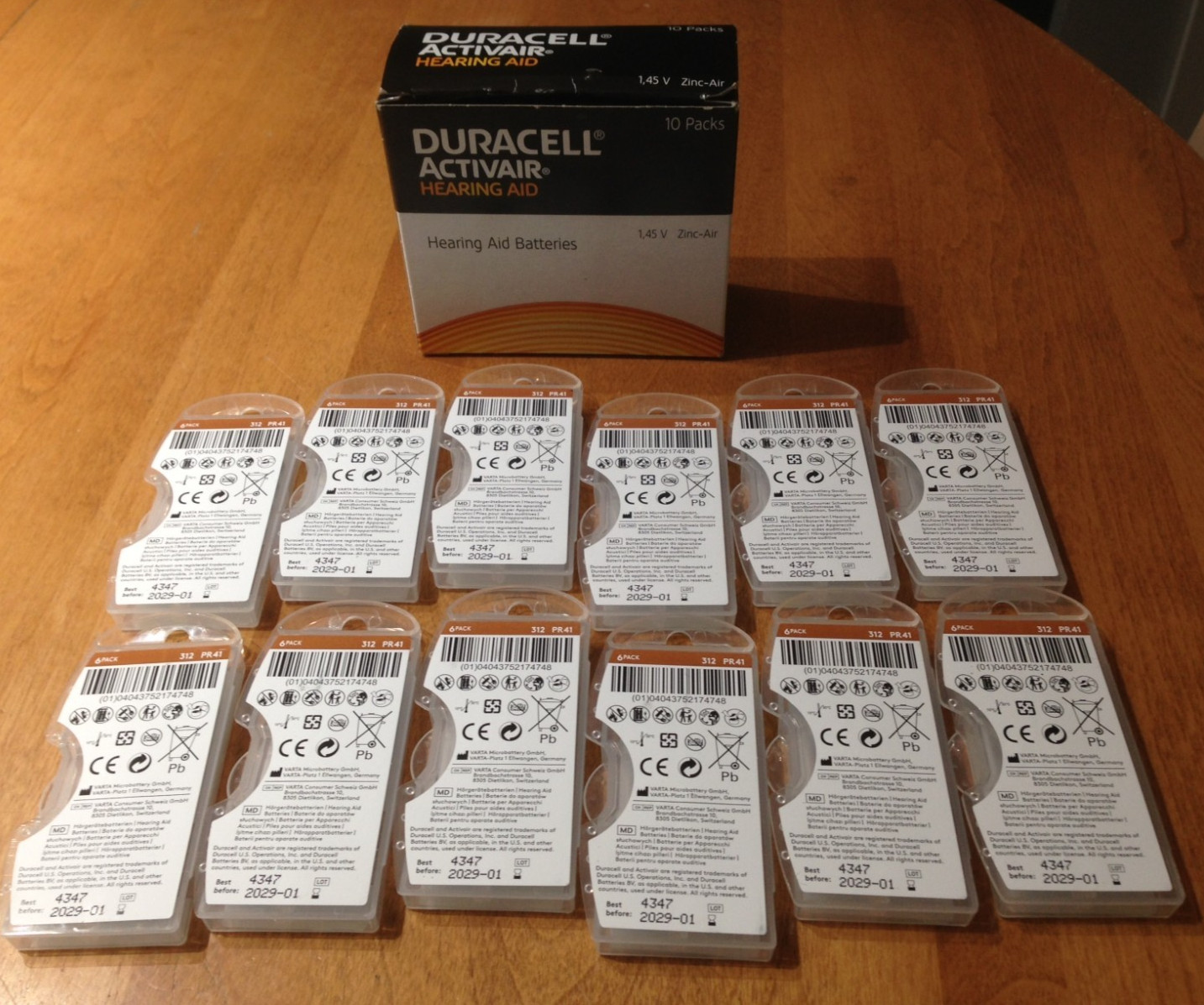 Duracell EasyTab/Activair Size 312 Zinc Air Hearing Aid Batteries 72 Total 2029