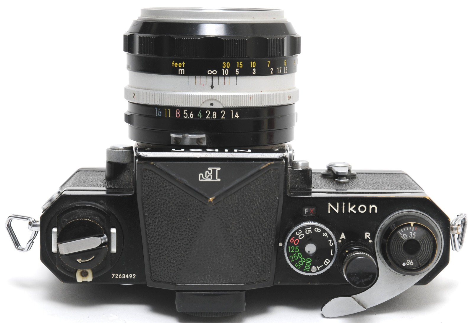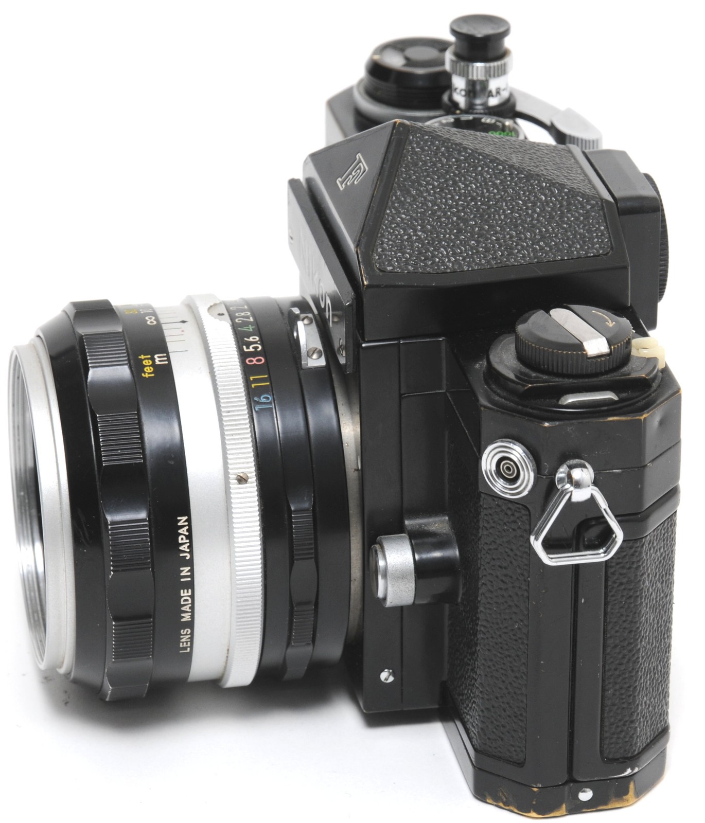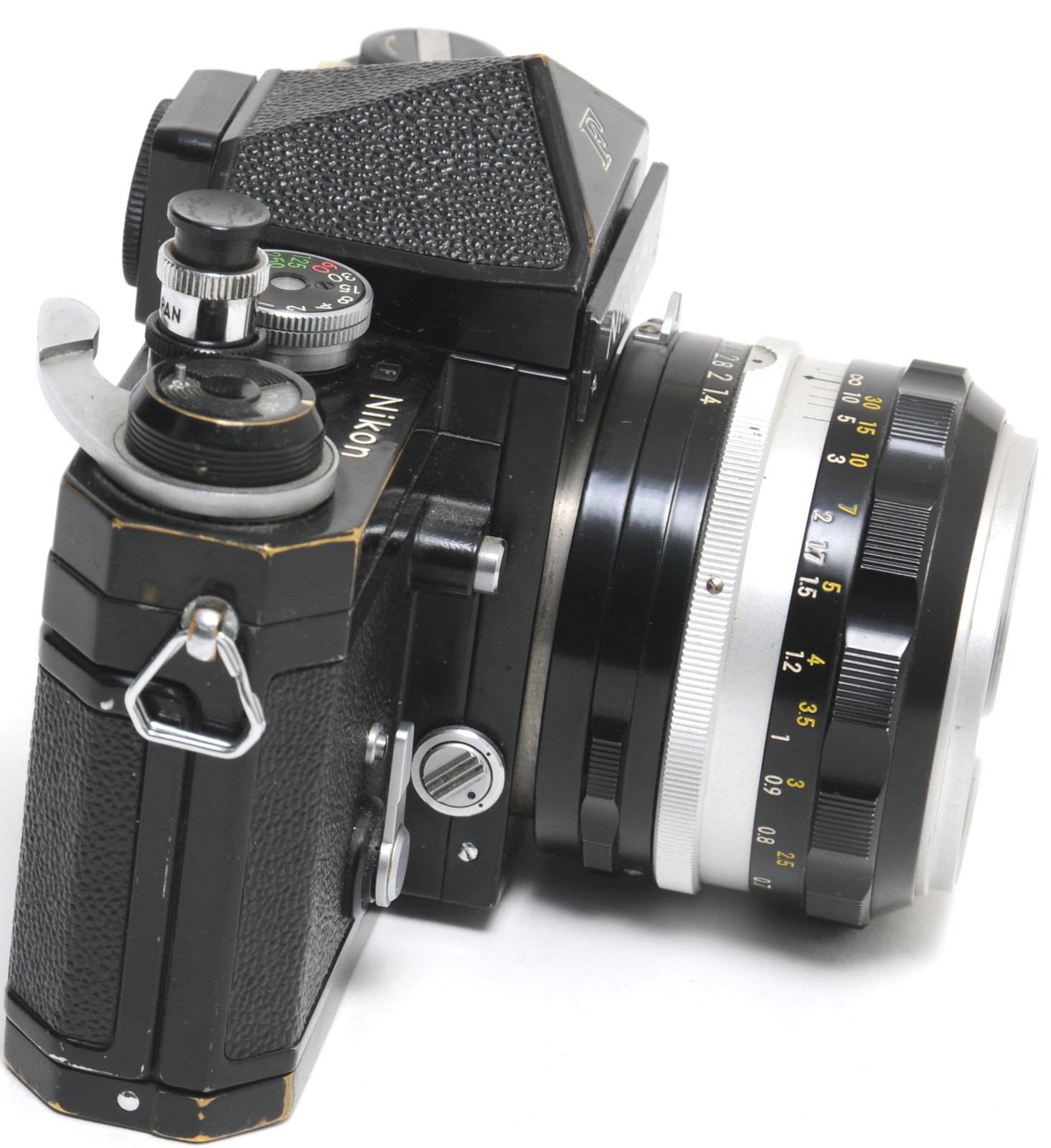 как выглядит Nikon F black paint with 1.4/50 mm Nikkor nice patina approx. 1971 film camera фото