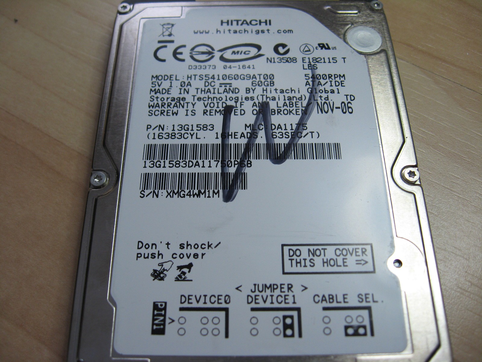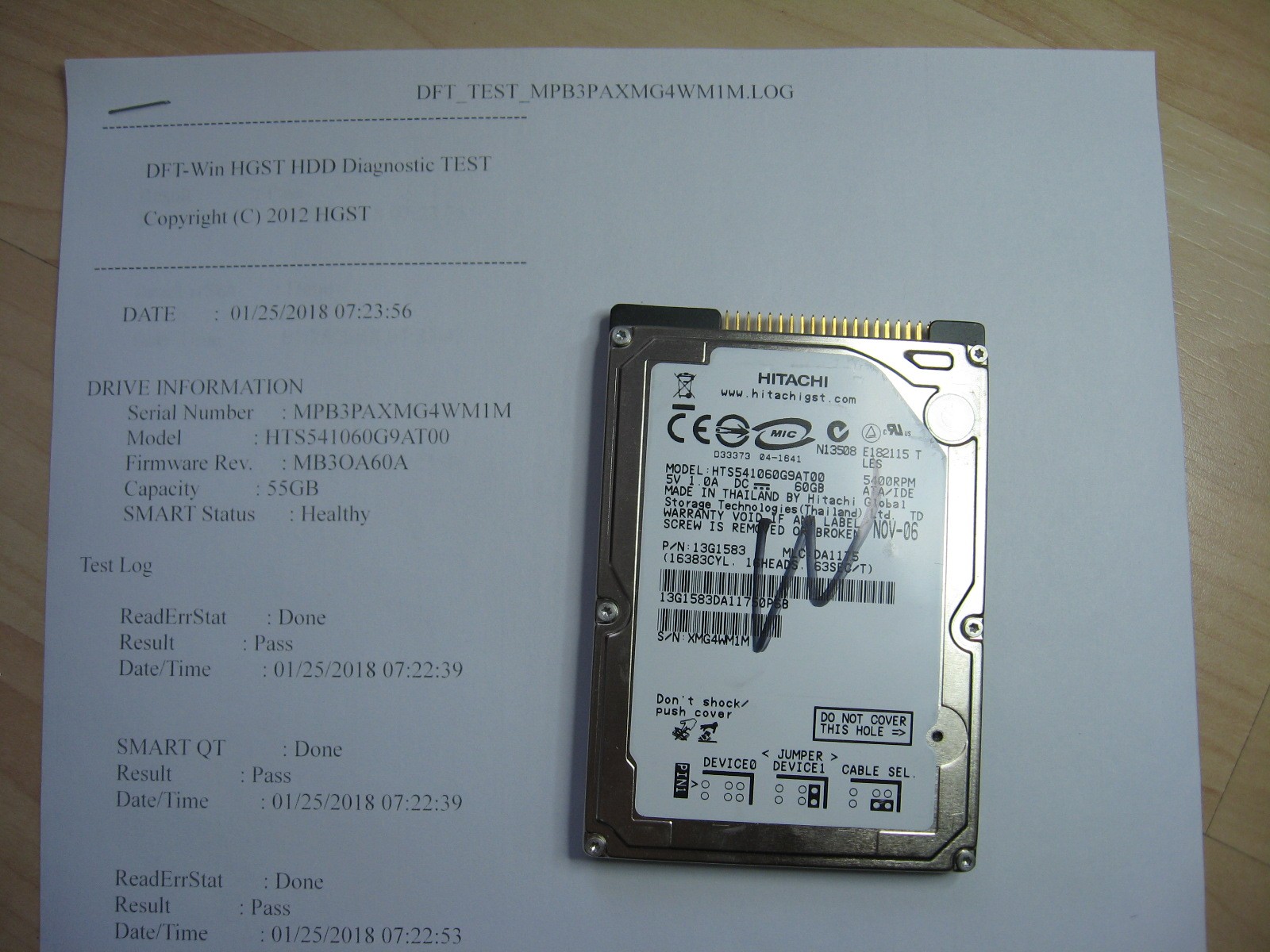 Hitachi HTS541060G9AT00 IDE Hard Drive 60GB 2.5 WinDFT Tested w/ Log C101CM