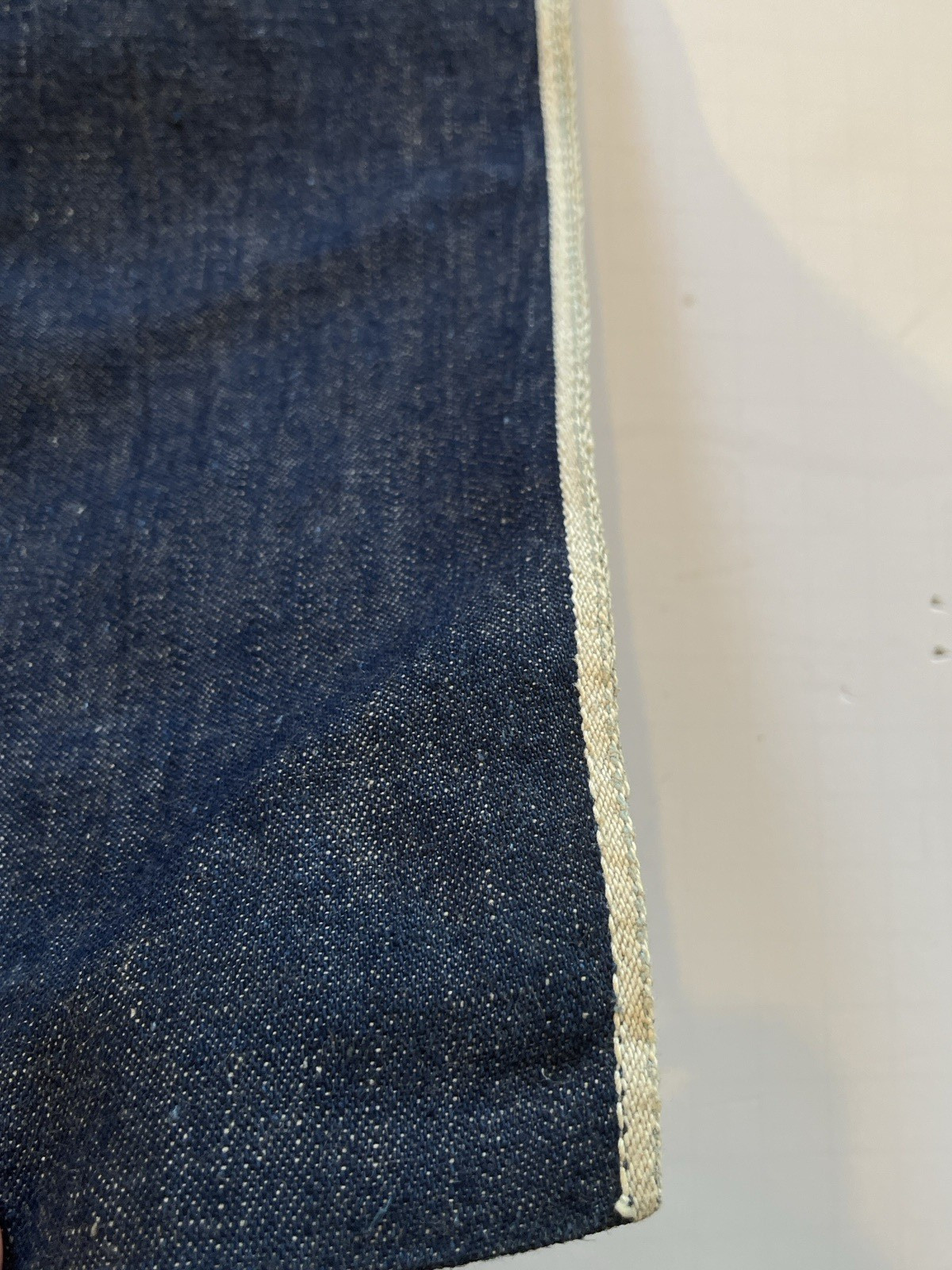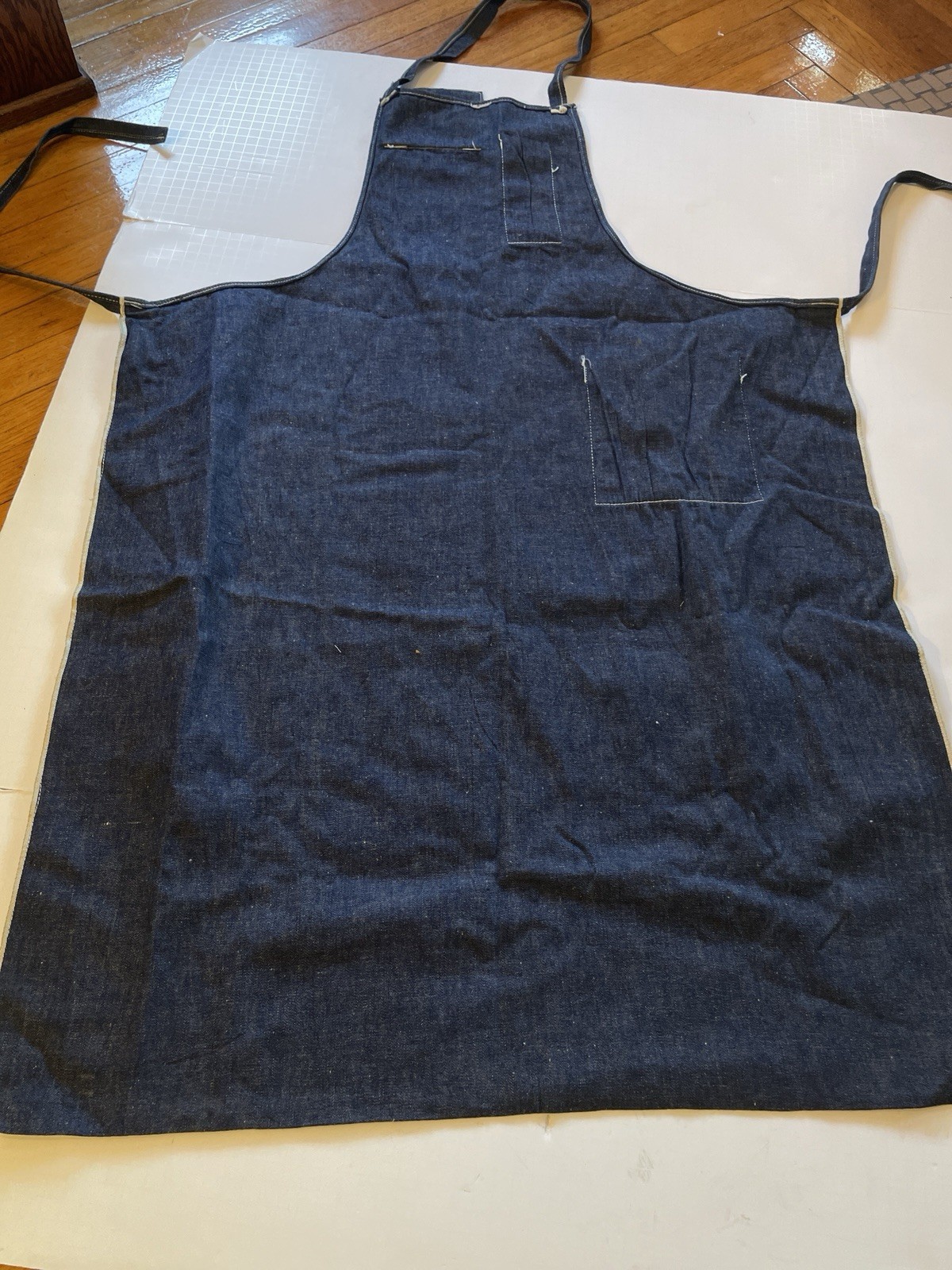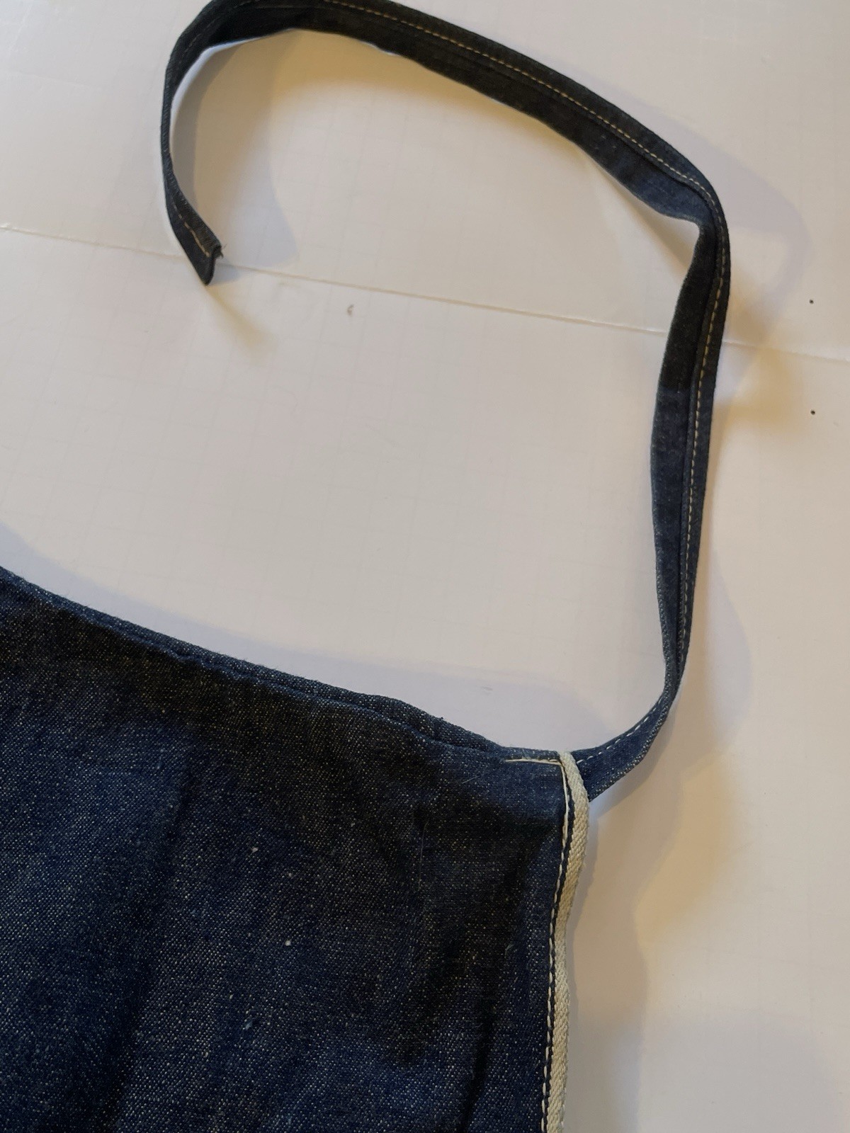 VTG DARK DENIM INDIGO SHOP WORK APRON WHITE SELVEDGE EDGE POCKETS CARPENTER