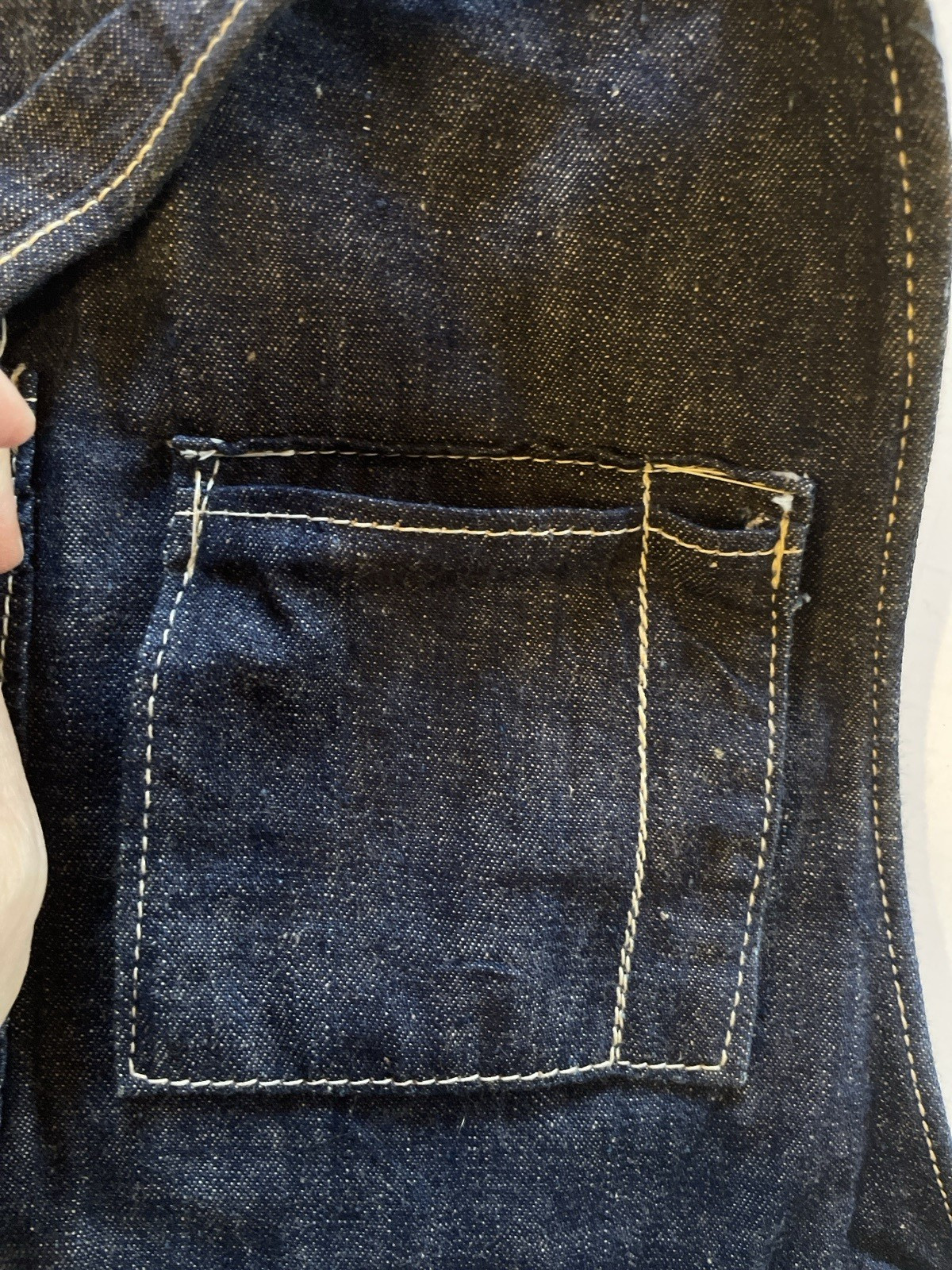 как выглядит VTG DARK DENIM INDIGO SHOP WORK APRON WHITE SELVEDGE EDGE POCKETS CARPENTER фото