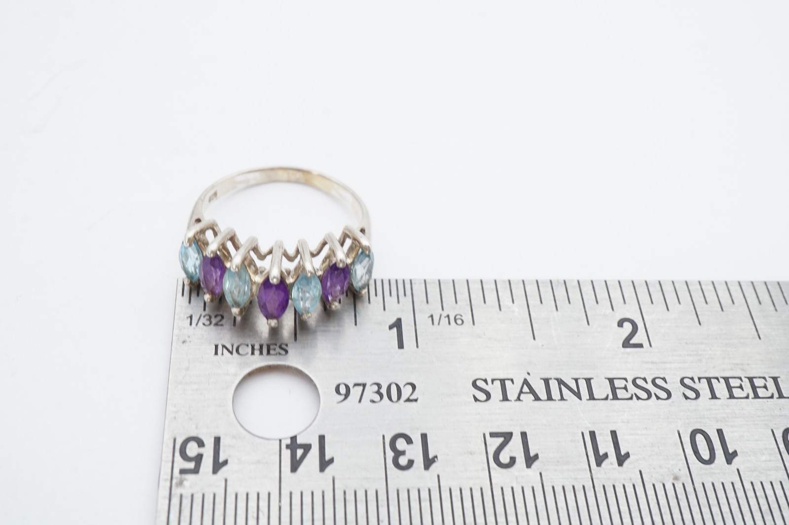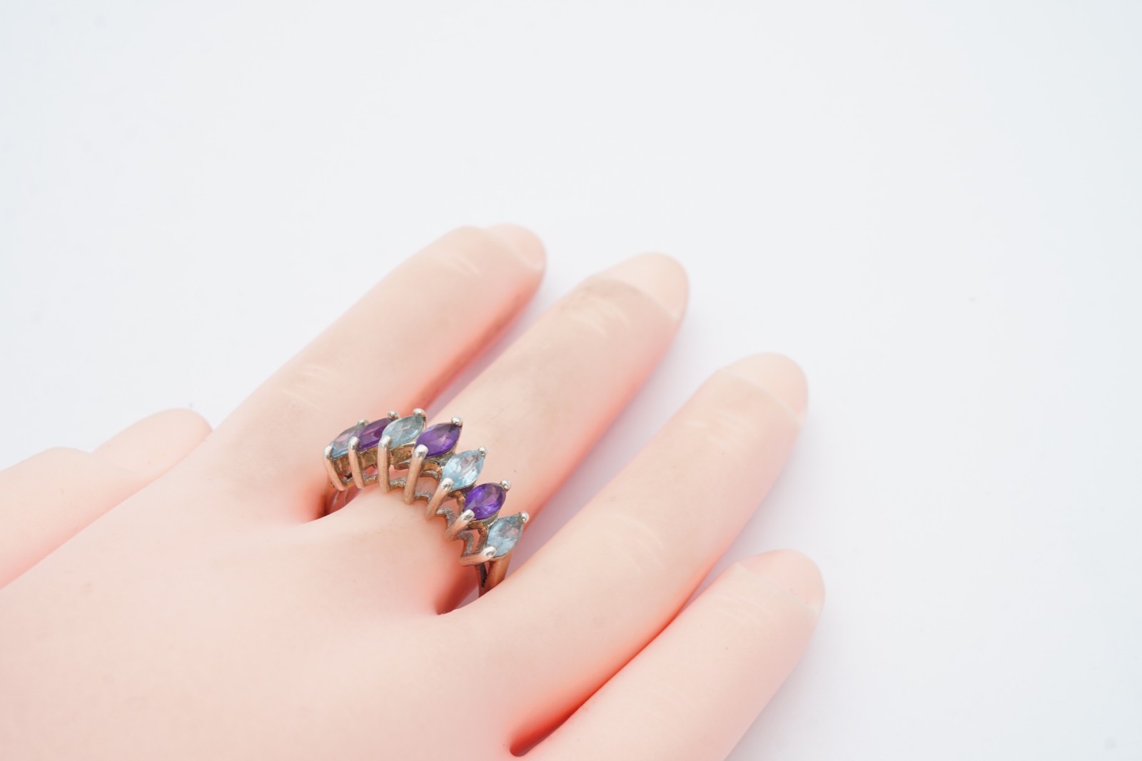 как выглядит Vintage Sterling Silver 925 Amethyst Blue Topaz Ring Size 7 фото