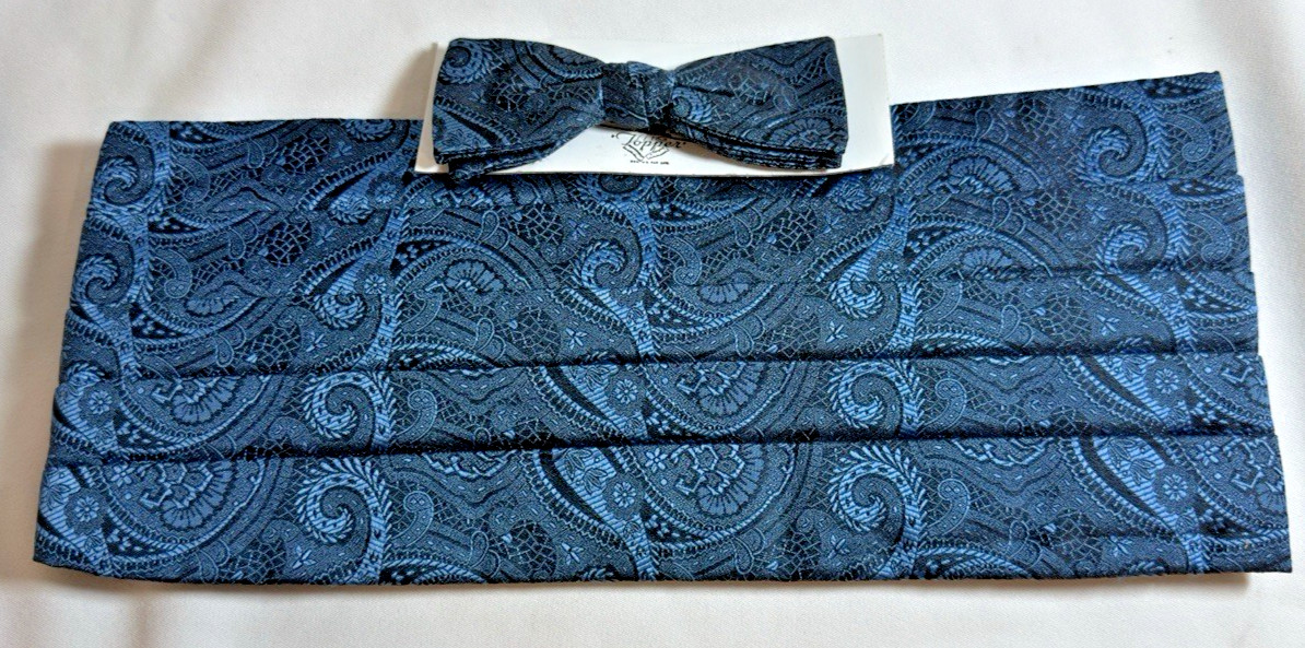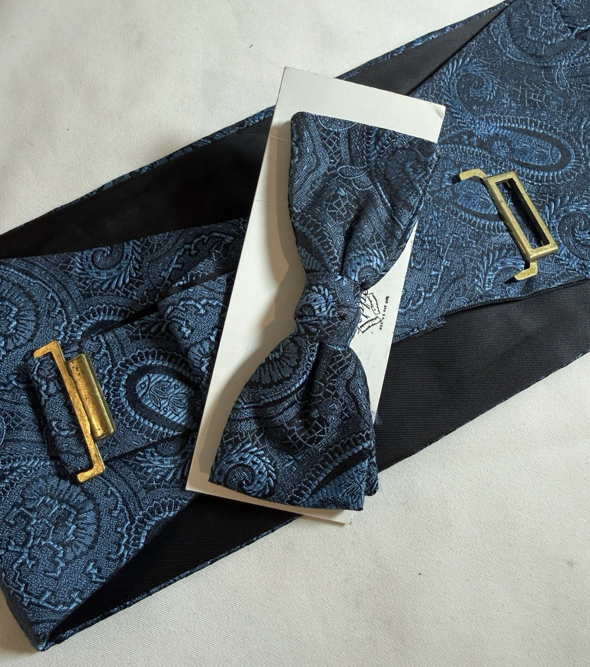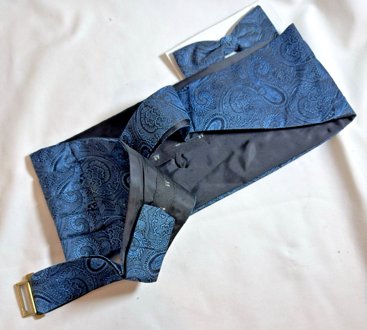 Vintage Beau Brummell Matching Cummerbund Bow Tie - Bright Blue Paisley