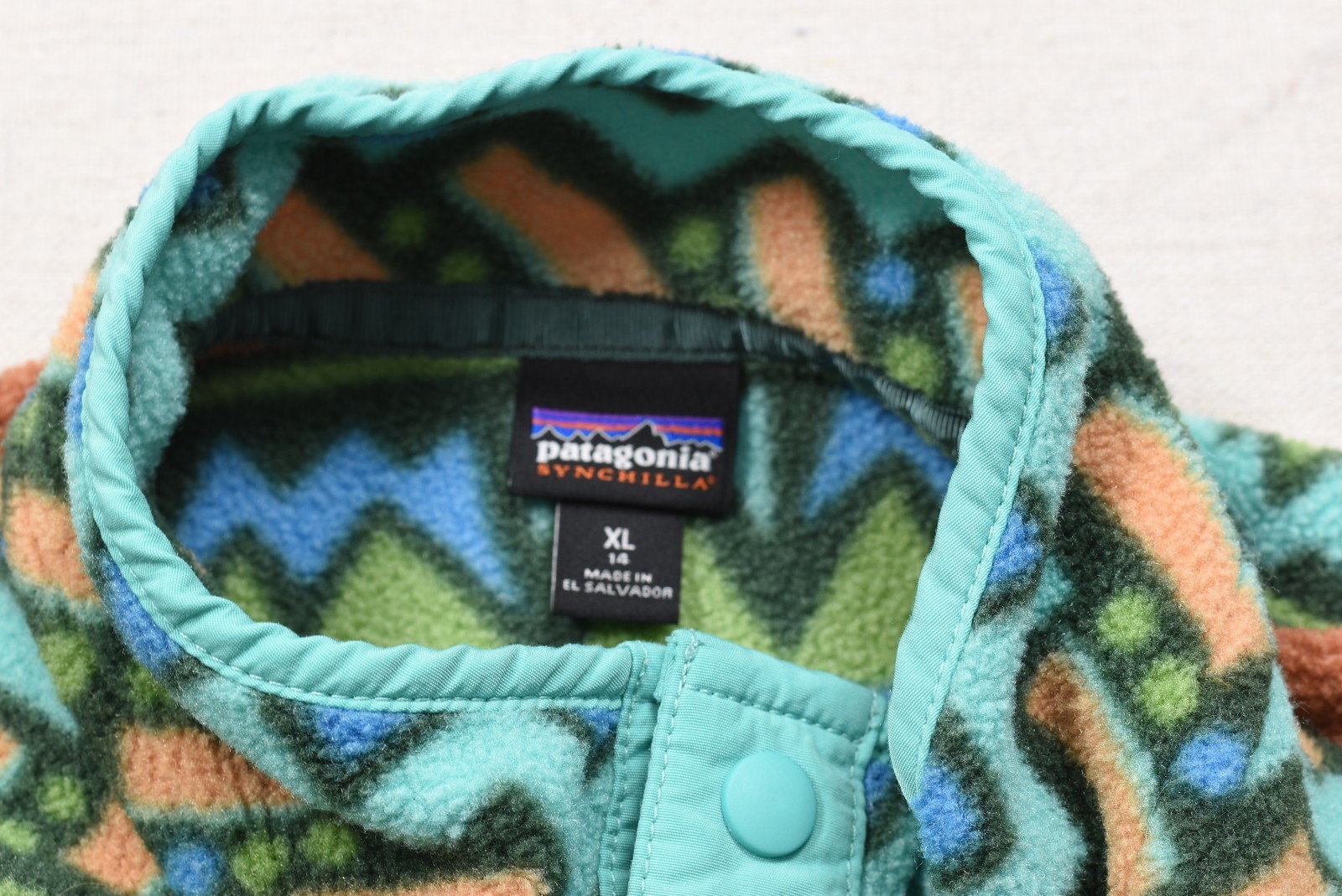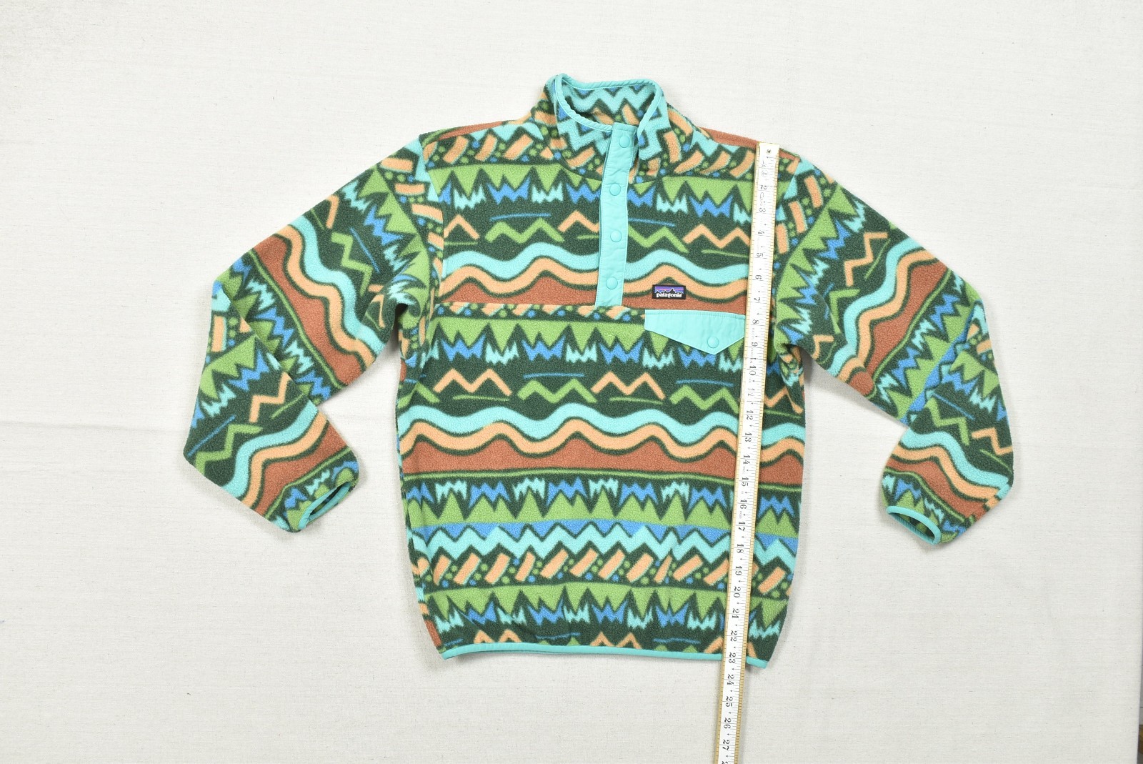 как выглядит Patagonia Synchilla Snap-T Fleece Pullover Sweater Kids XL 14 Geometric Pattern фото