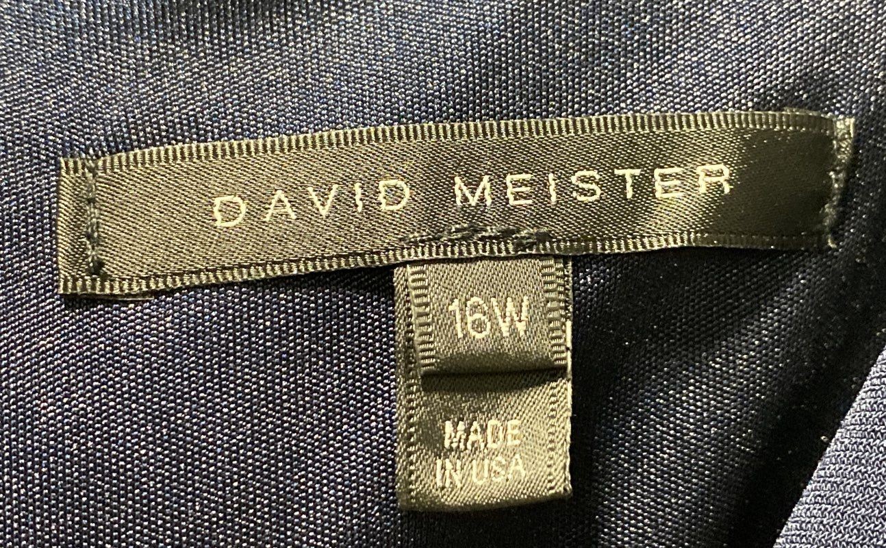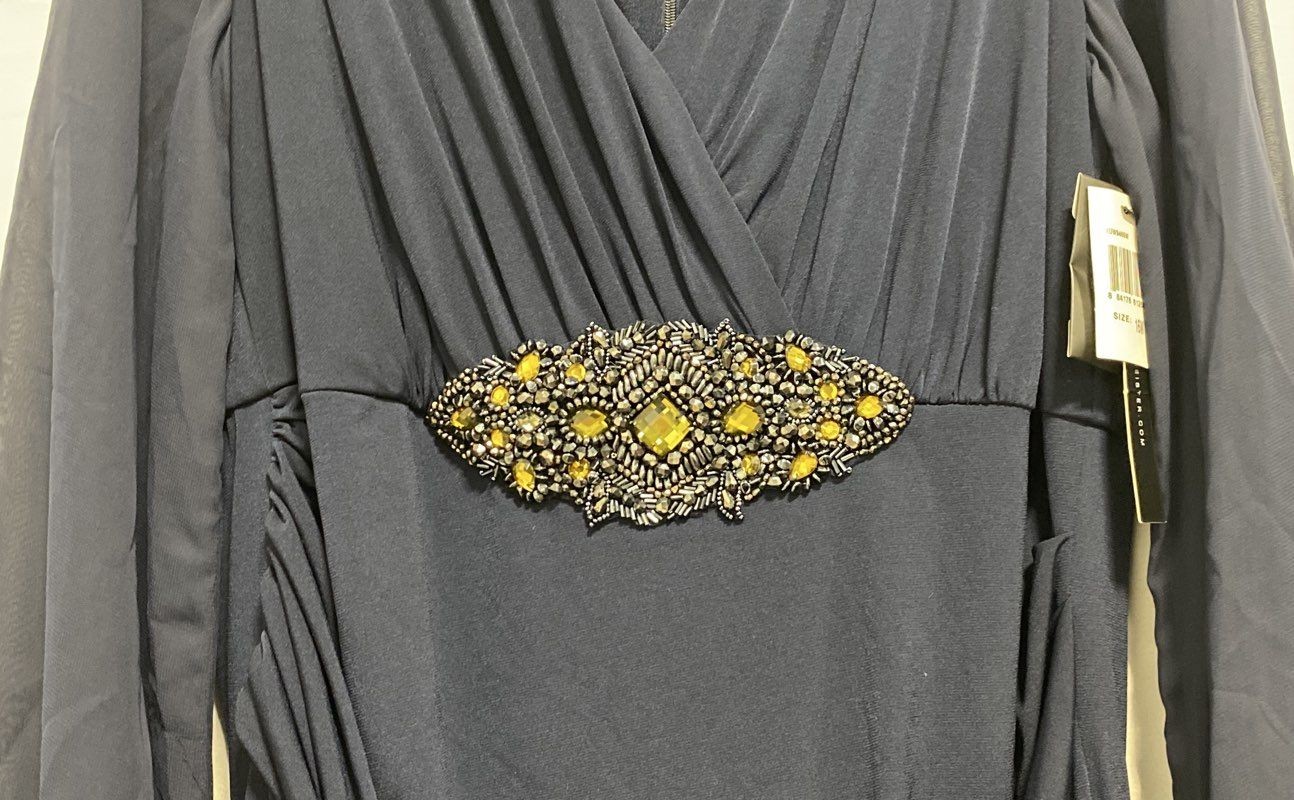 David Meister Women's Gown Navy Beaded Ruched Long Sleeve Dress NWT Sz 16W