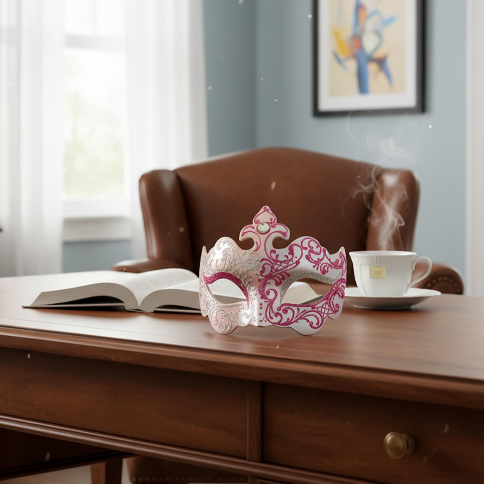 как выглядит Silver/pink Farallina Mask Costume Accessory фото