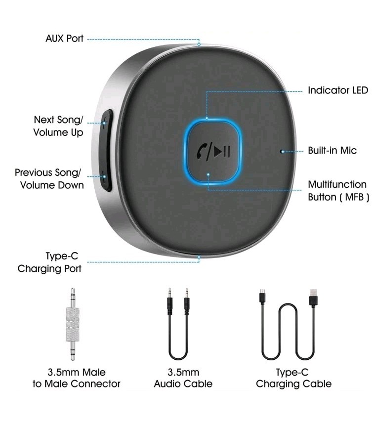 Bluetooth Receiver 3.5mm Aux Car Adapter Wireless Audio Receiver for Home Stereo