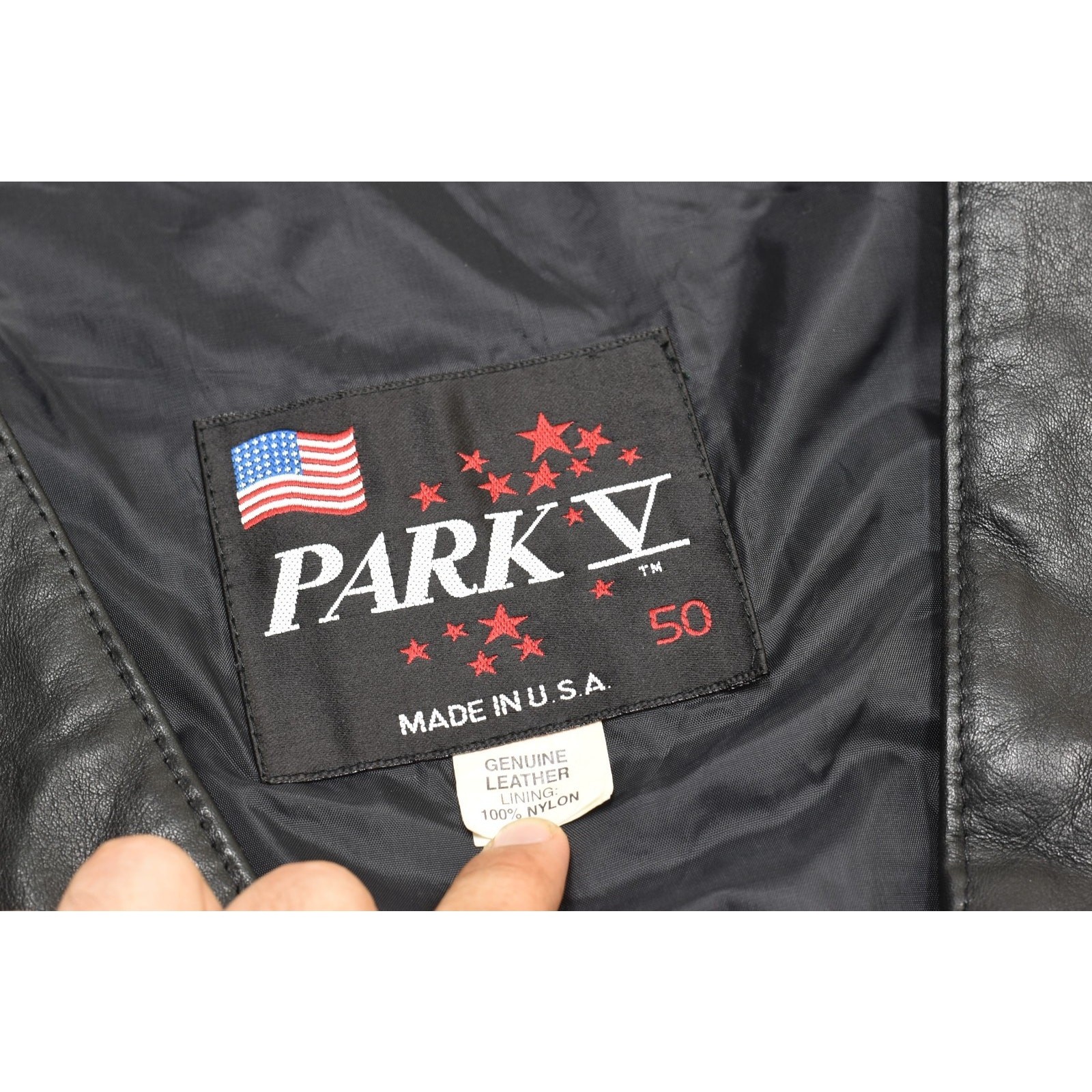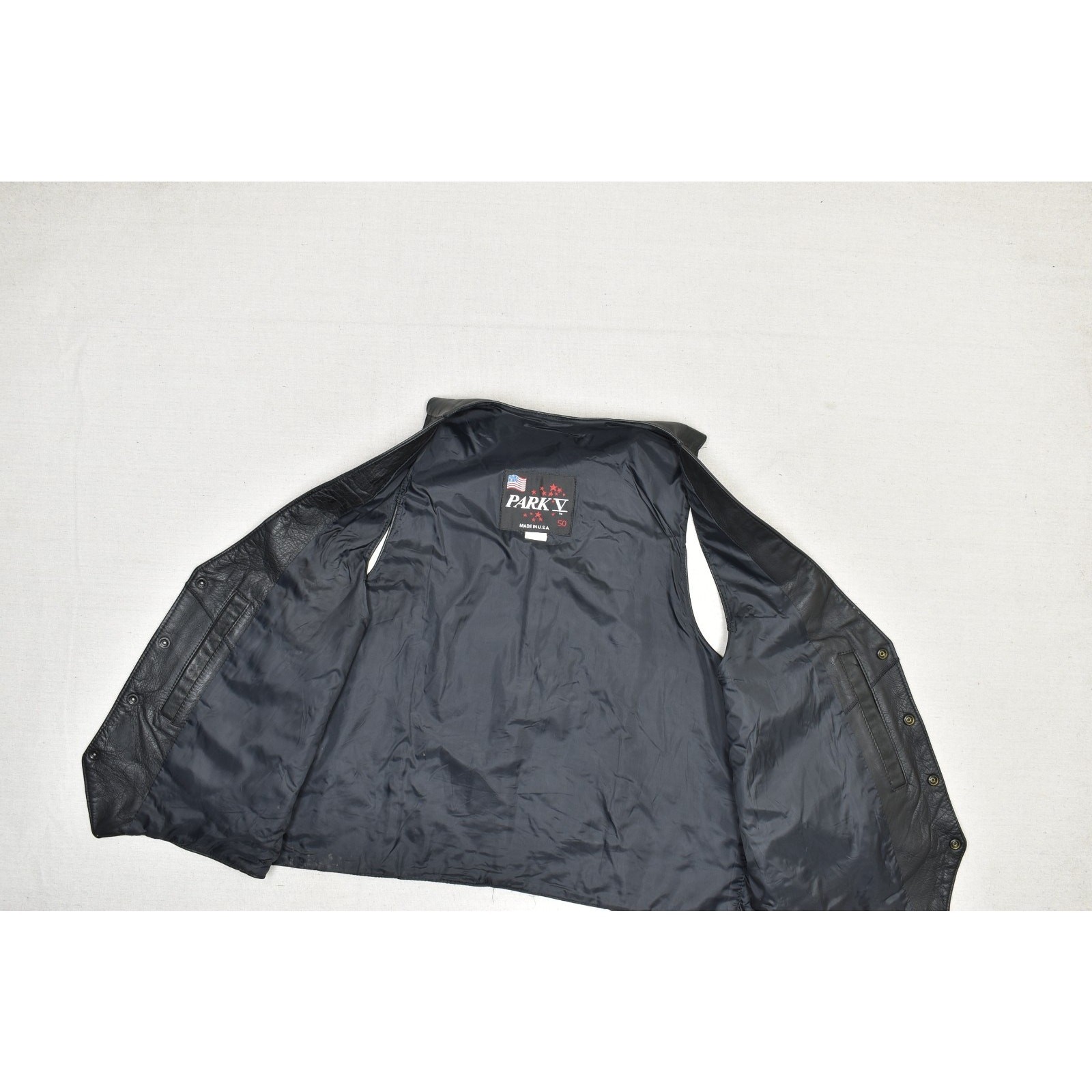 PARK V Men's Black Leather Motorcycle Vest Biker Size 50 Long Made in USA