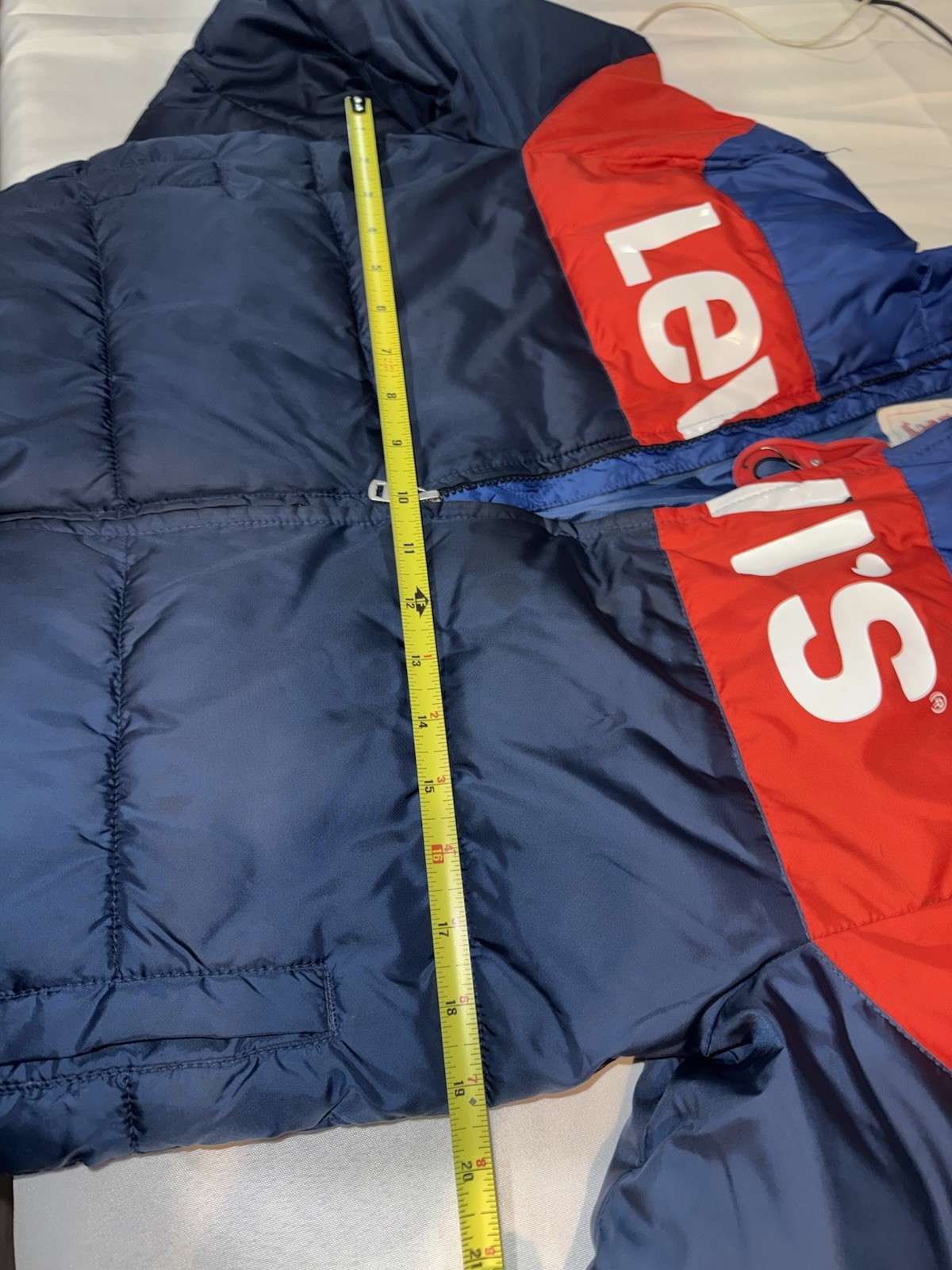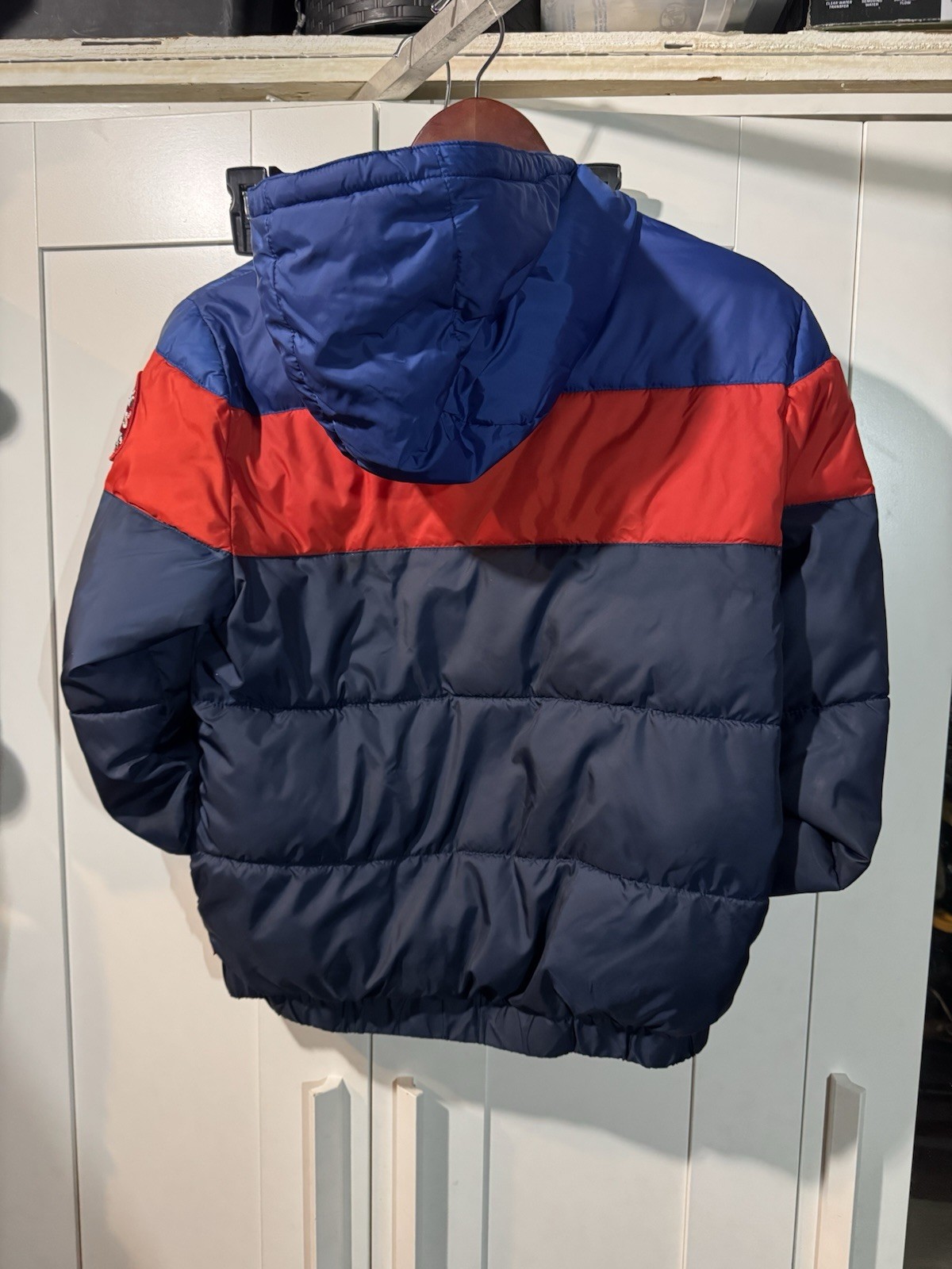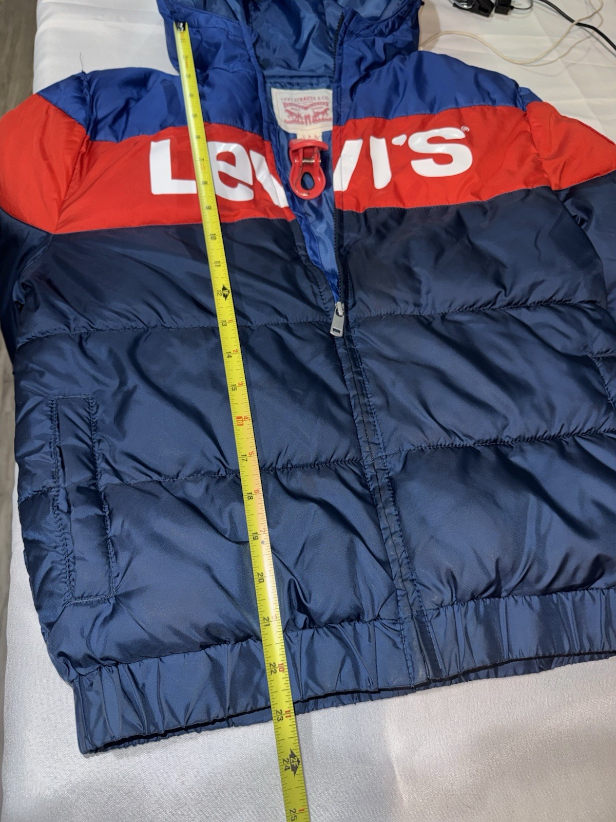 как выглядит LEVIS Boys Size L 12-13 YRS Blue Red Puffer Zip Up Hooded Pockets Jacket фото