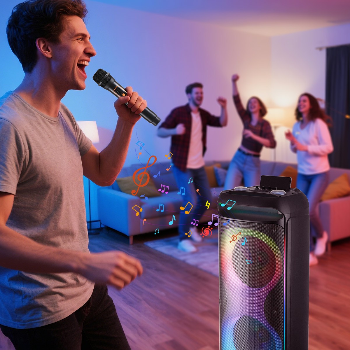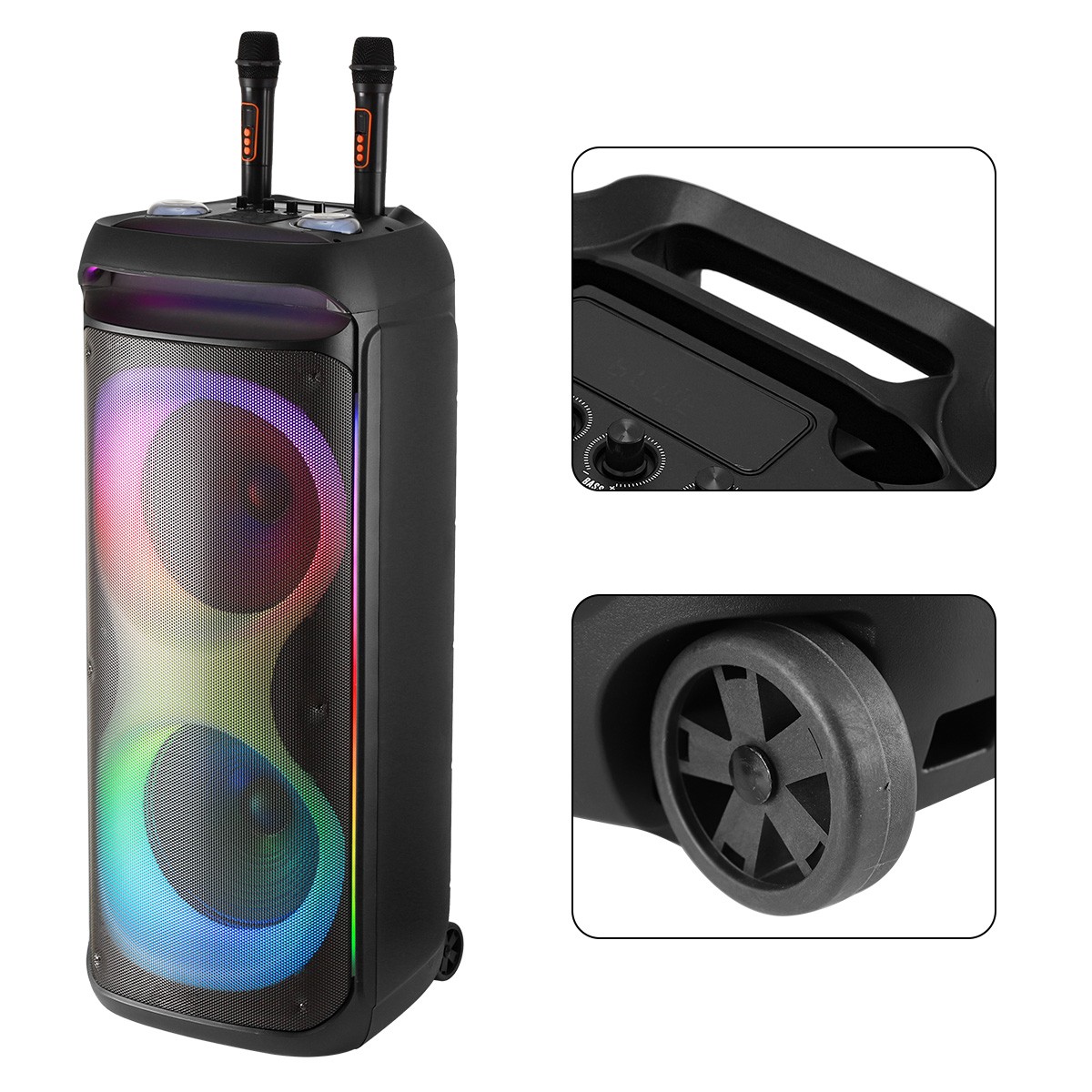 Особенности: Bluetooth, Remote Control, Bluetooth, Wireless TWS, BT Karaoke, PA Loud Speaker Dual 12"