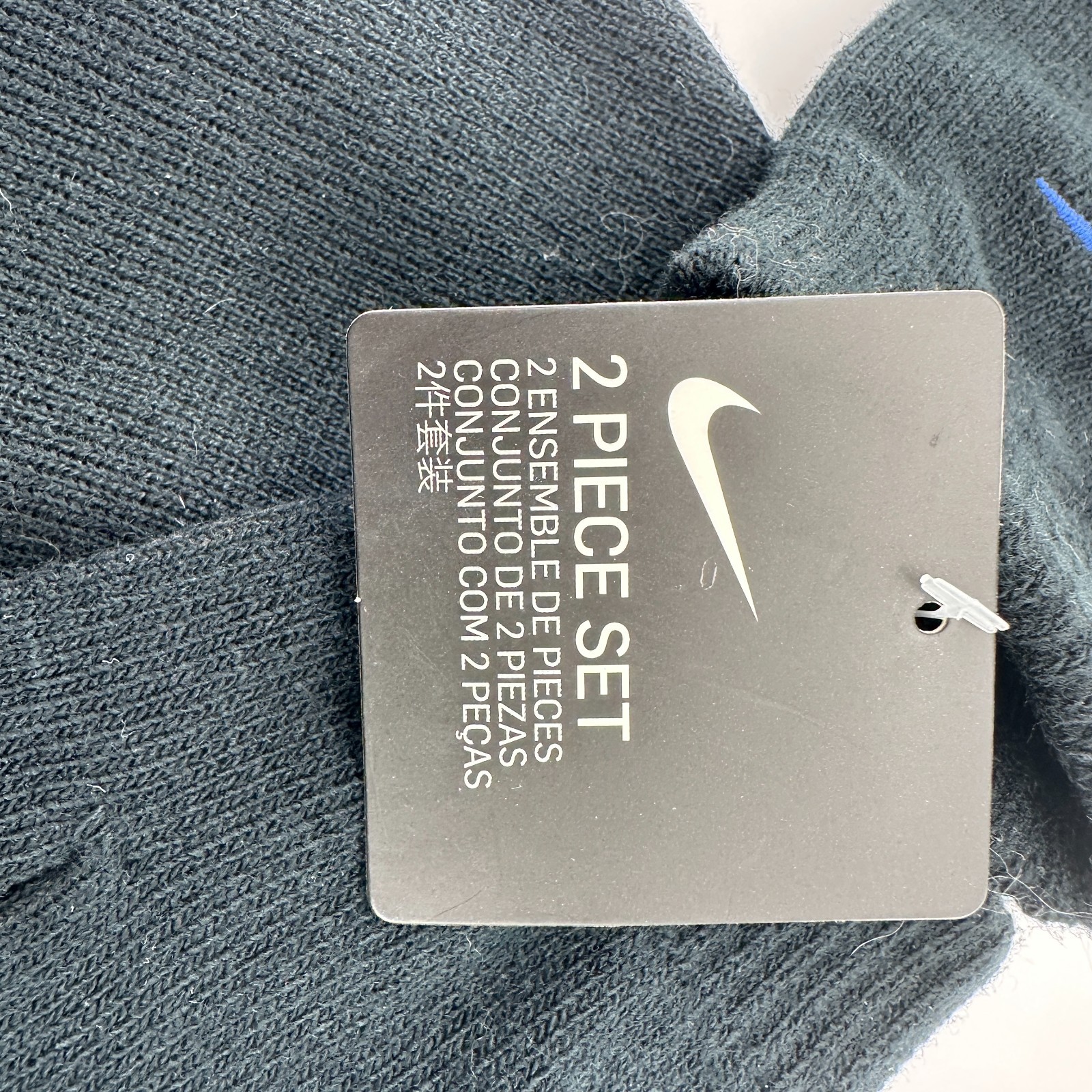 NIKE Boys Youth 8/20 2 Piece Fold over Futura Beanie Hat Gloves Set Navy