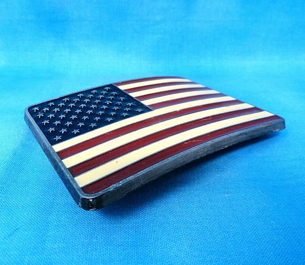 Patriotic American Flag Belt Buckle Enameled Stars Stripes USA Vtg 70s RJ.MMR253